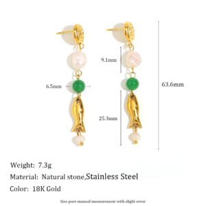 European and American cross-border popular light luxury retro earrings, 18K gold-plated stainless steel pearl fish tassel earrings