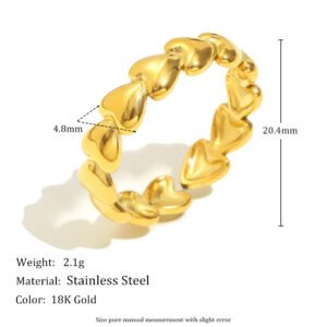 European and American cross-border retro and cool style ring, stainless steel 18K gold-plated simple mini heart open ring