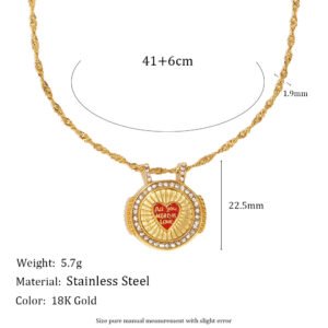 European and American cross-border retro and versatile stainless steel 18K gold-plated zircon red heart disc earrings, necklace and ring for women