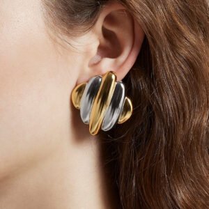 Jingqiao’s minimalist design, 18K gold and stainless steel polished simple earrings, versatile stainless steel earrings wholesale.