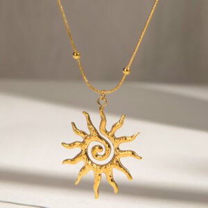 Jingqiao’s modern minimalist design, 18K gold stainless steel hammered spiral sun pendant necklace, wholesale jewelry.