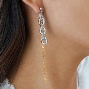 Jingqiao’s modern minimalist design, 18K gold and stainless steel gold and silver color combination chain tassel earrings wholesale