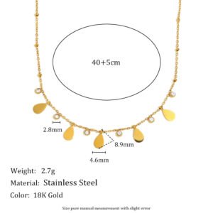 European and American cross-border hot-selling light luxury, fashionable, simple necklace, stainless steel 18K gold-plated teardrop zircon bead necklace for women
