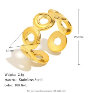 European and American cross-border hot-selling minimalist, versatile geometric ring, stainless steel 18K gold-plated round open ring.