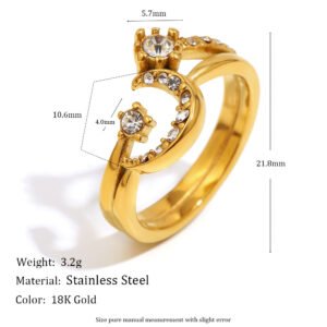 European and American cross-border hot-selling niche fashion trendy stainless steel 18K gold-plated single zircon ring.