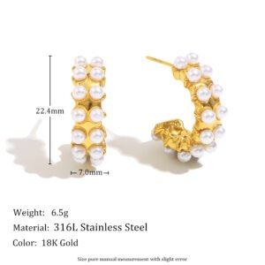 European and American cross-border hot-selling light luxury exquisite earrings, 18K gold-plated stainless steel small double-layer pearl stud earrings.