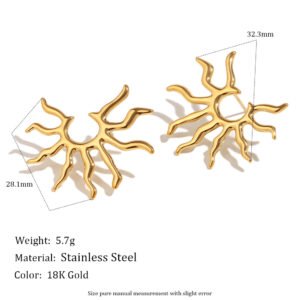 European and American cross-border hot-selling, personalized, niche, exaggerated, retro, stainless steel 18K gold-plated sunray earrings.