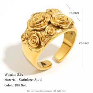 European and American cross-border INS style elegant French retro ring jewelry, stainless steel 18K gold-plated large and small flower open ring.