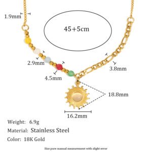 European and American cross-border INS style, French retro versatile necklace, stainless steel 18K gold-plated natural stone sun pendant necklace