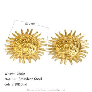 European and American cross-border INS style, luxurious, exaggerated, ocean-inspired earrings with 18K gold-plated hammered patterns Starfish earrings