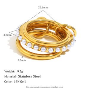 European and American cross-border INS style, versatile, simple hoop, elegant finger ring, stainless steel 18K gold-plated three-layer imitation pearl ring