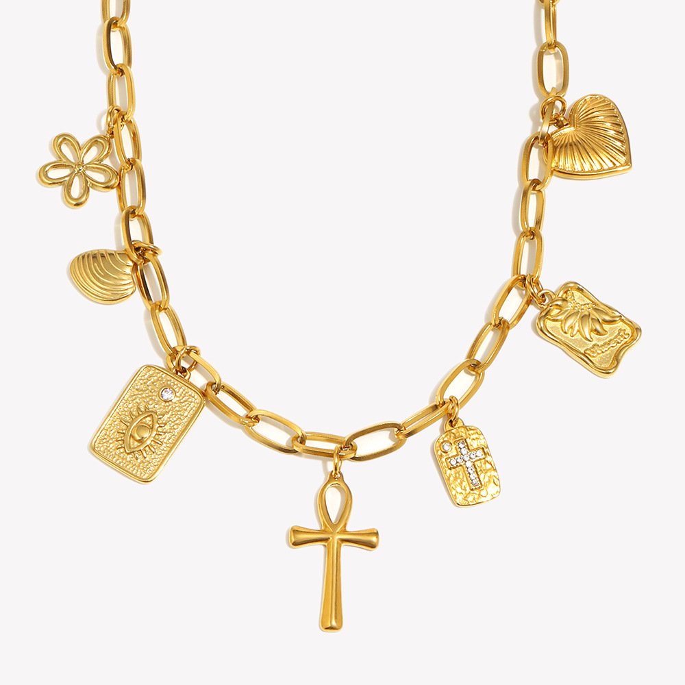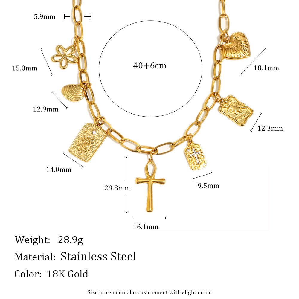 欧美时尚个性高级感十字架吊坠不锈钢镀18K金手工DIY吊坠项链轻奢
