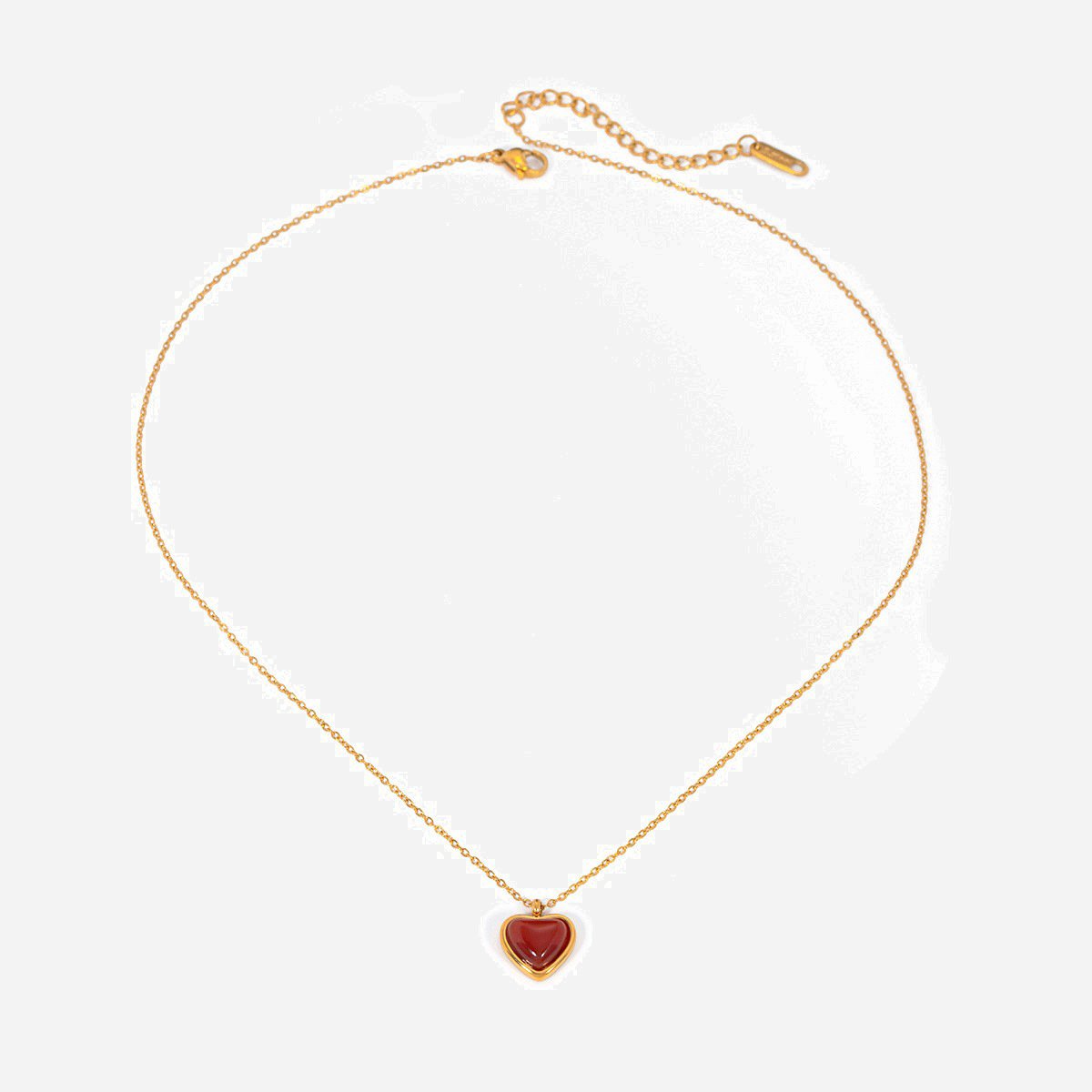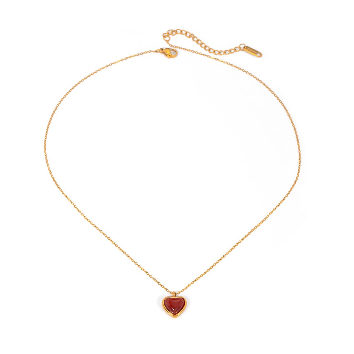 Amazon’s best-selling cross-border item: European and American 18k gold and stainless steel with red agate/red agate inlaid heart pendant necklace