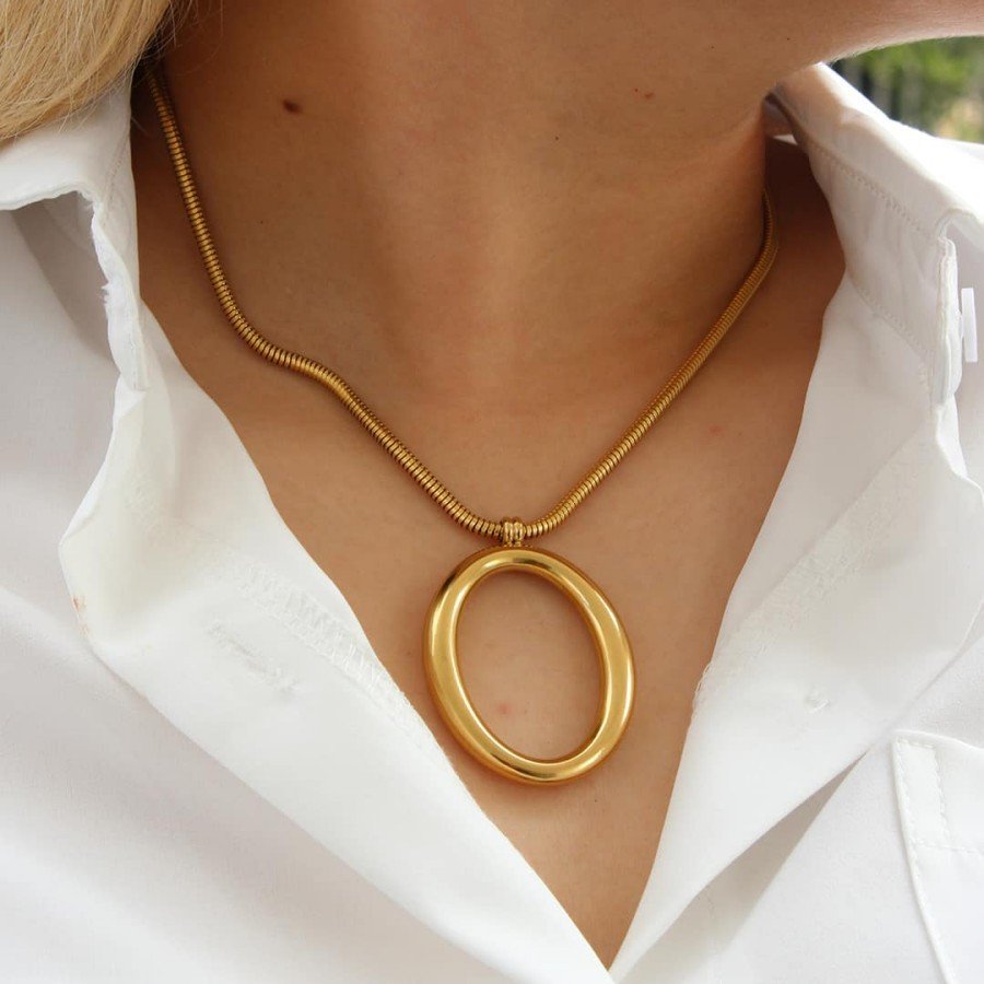 Cross-border personality simple stainless steel necklace earring jewelry set female minimalist 18k hoop circle titanium steel earrings