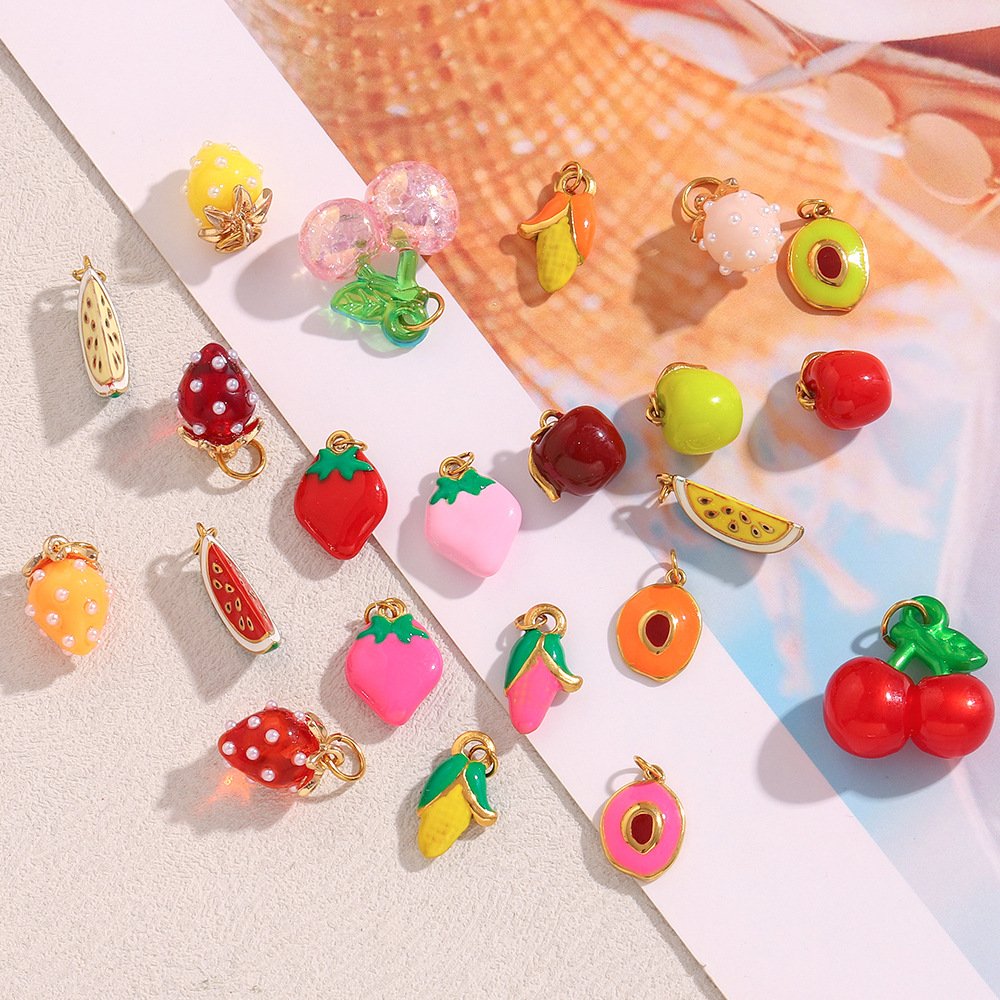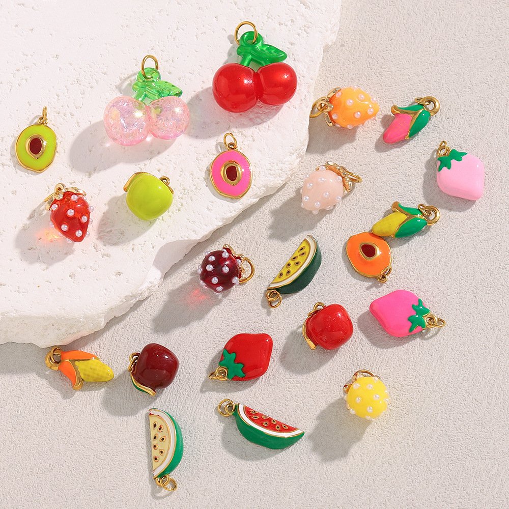 DIY accessory materials, necklace and bracelet jewelry, stainless steel 18K gold-plated strawberry, cherry, apple, watermelon fruit pendant.