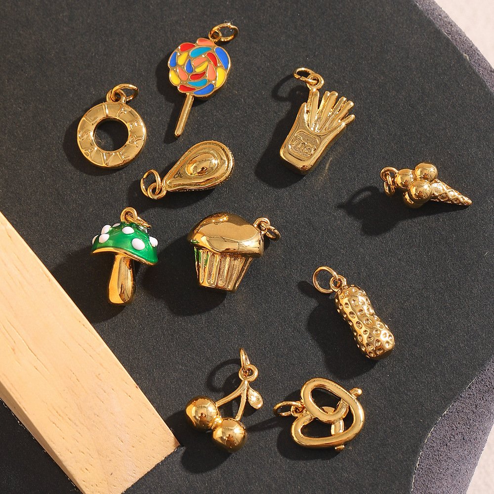 European and American cross-border DIY accessories and jewelry materials. 18K gold-plated stainless steel candy donut croissant pendant