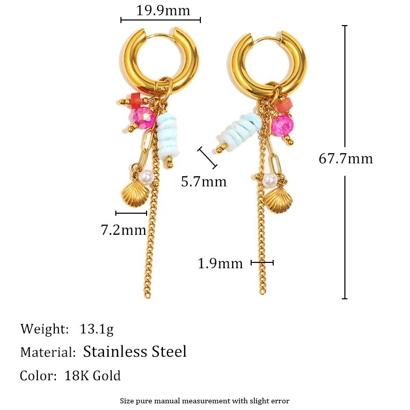 European and American cross-border elegant retro fashion personalized earrings, stainless steel 18K gold-plated natural stone tassel pendant earrings