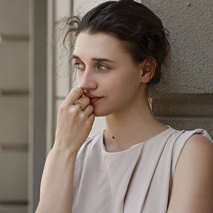 European and American cross-border fashion and high-end retro ring, stainless steel 18K gold-plated tassel heart open ring for women