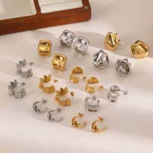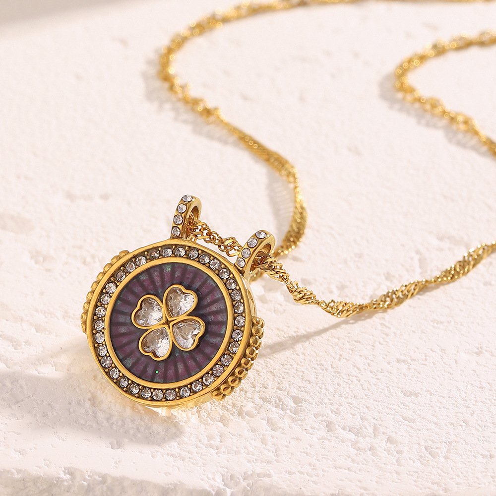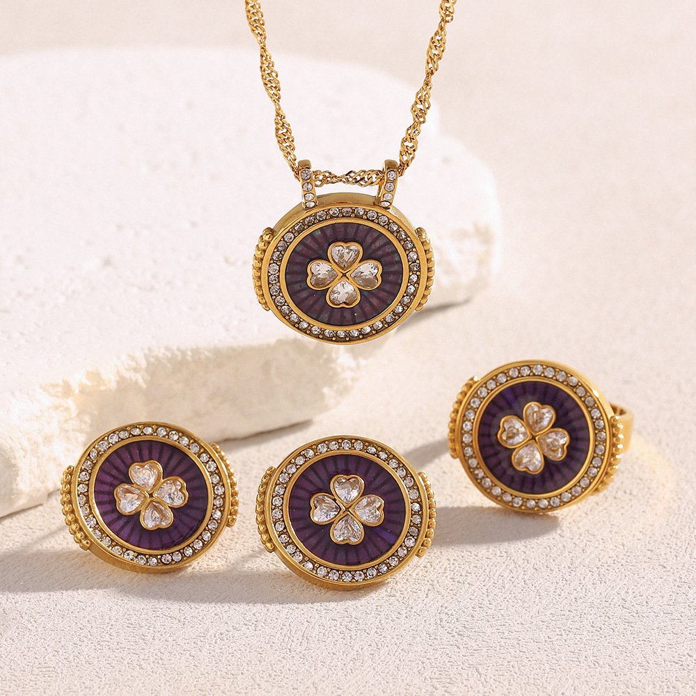 European and American cross-border French retro stainless steel 18K gold-plated zircon flower disc earrings, necklace and ring for women