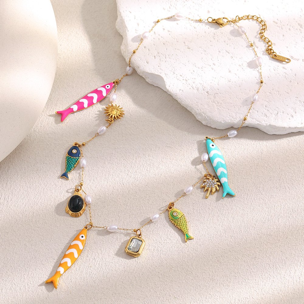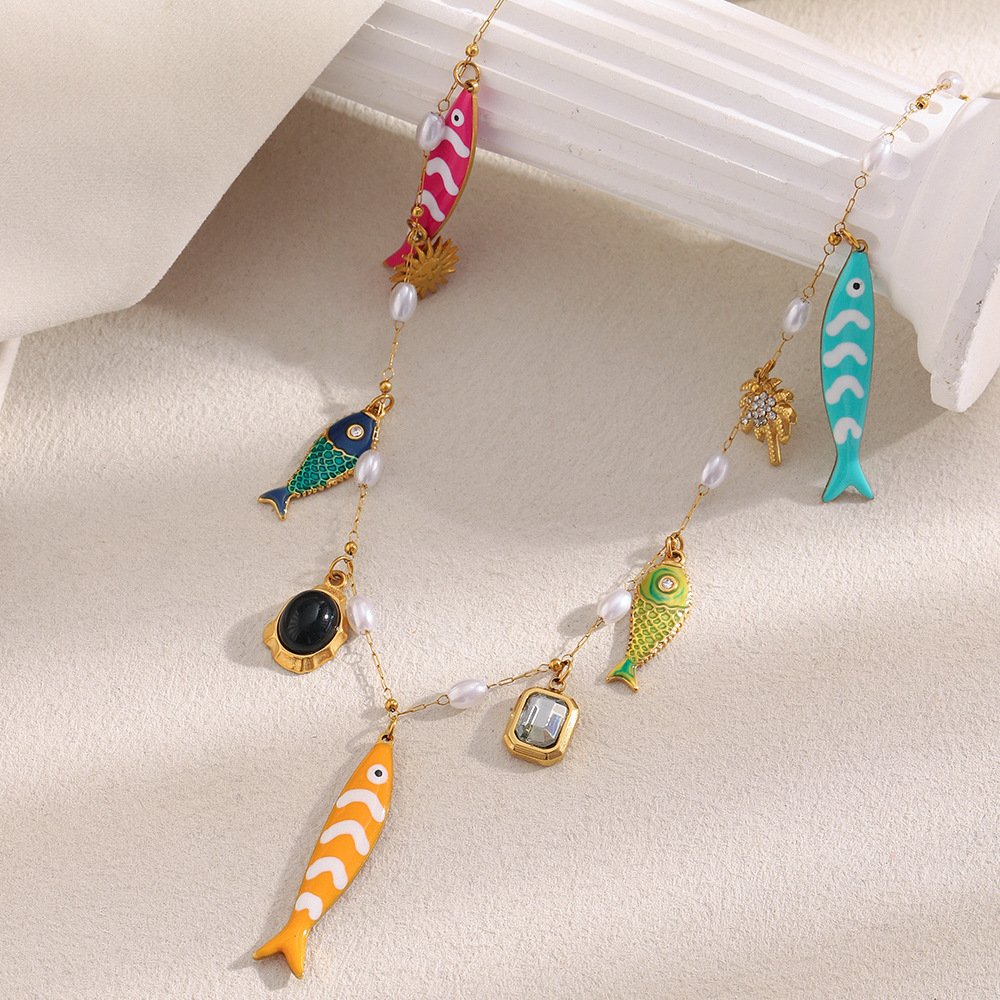 European and American cross-border high-end and elegant niche earrings stainless steel 18K gold plated pearl chain tassel earrings