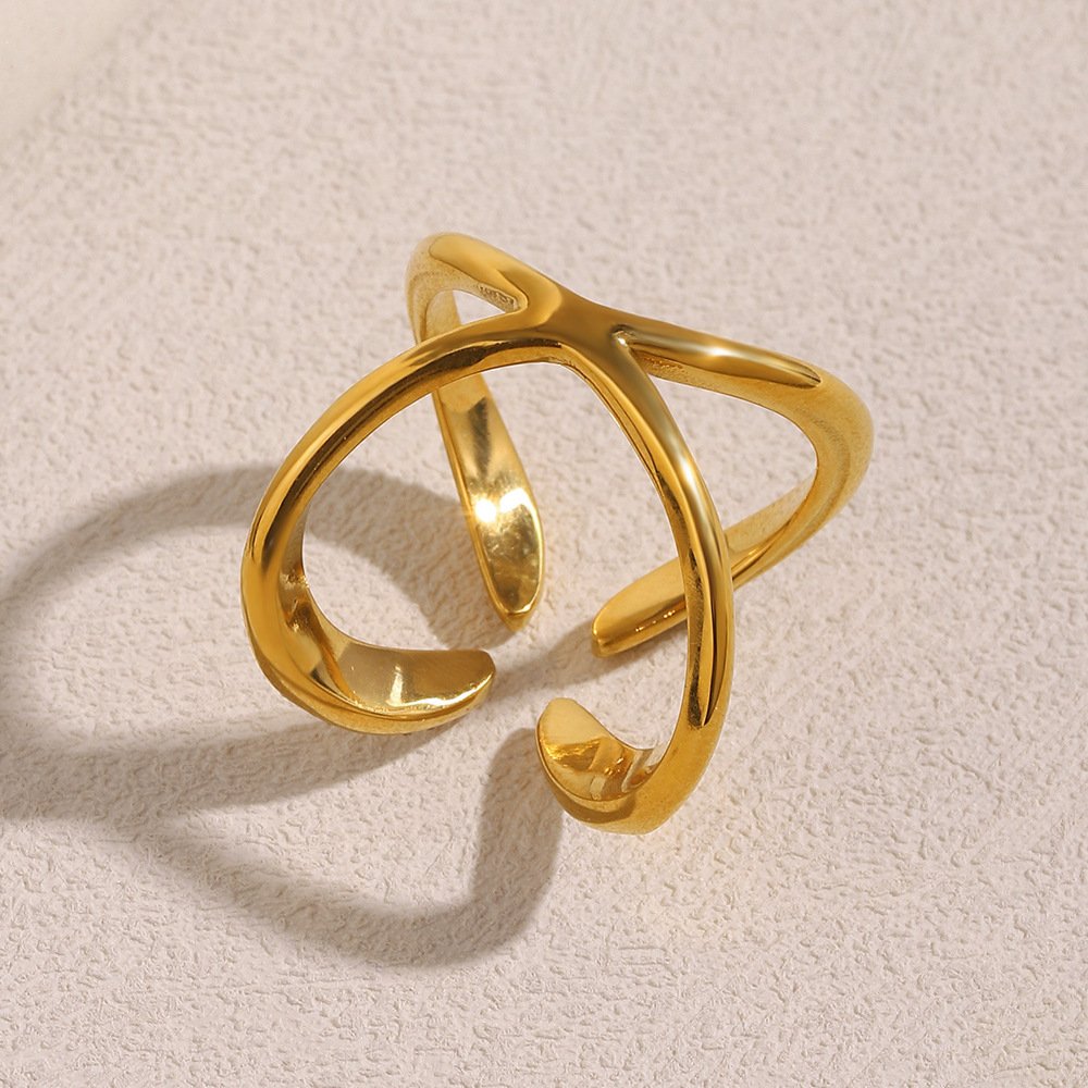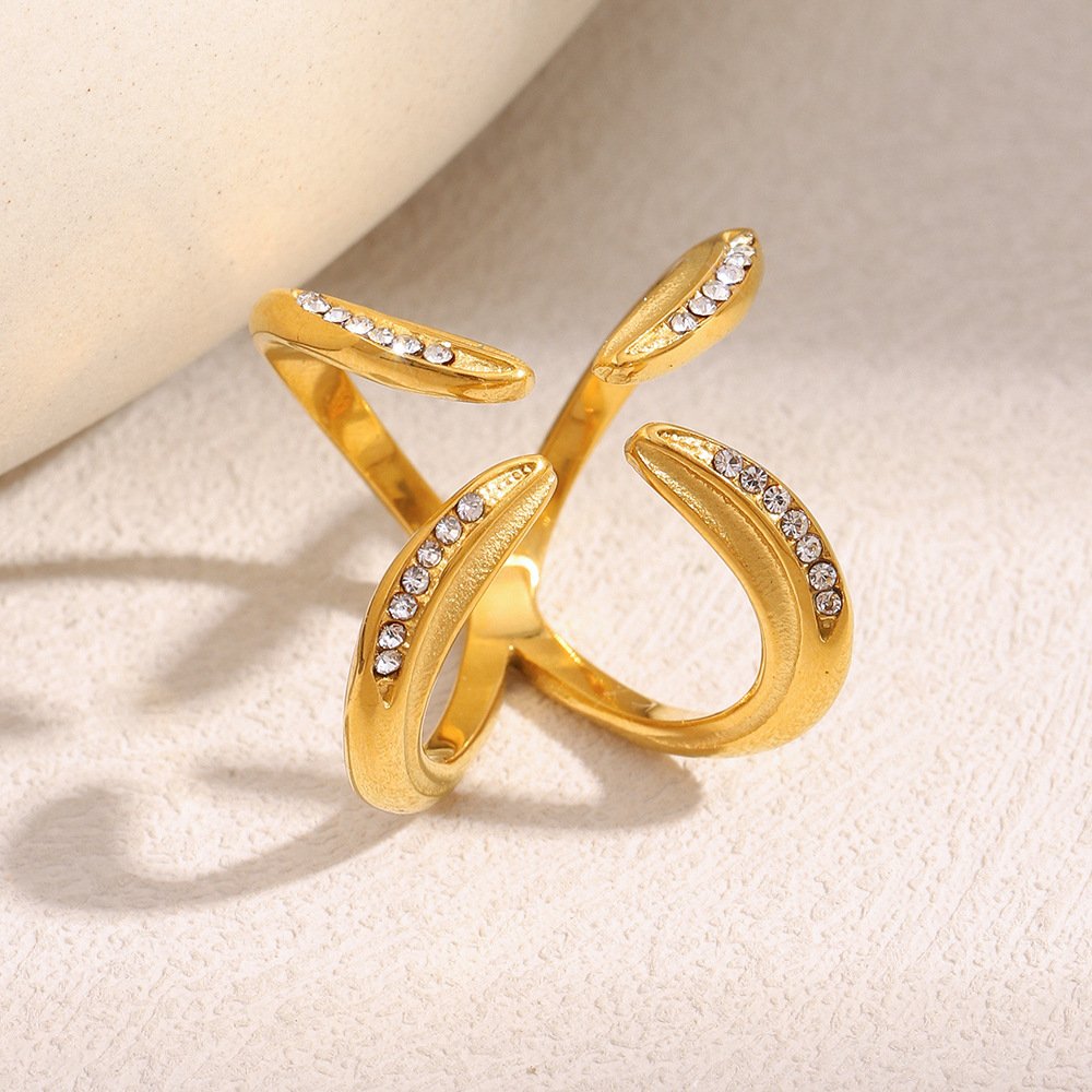 European and American cross-border hot-selling Fashionable, niche-design stainless steel 18K gold-plated four-claw open ring