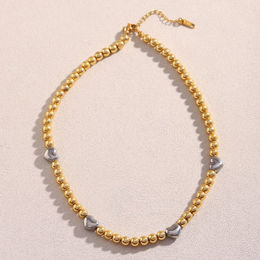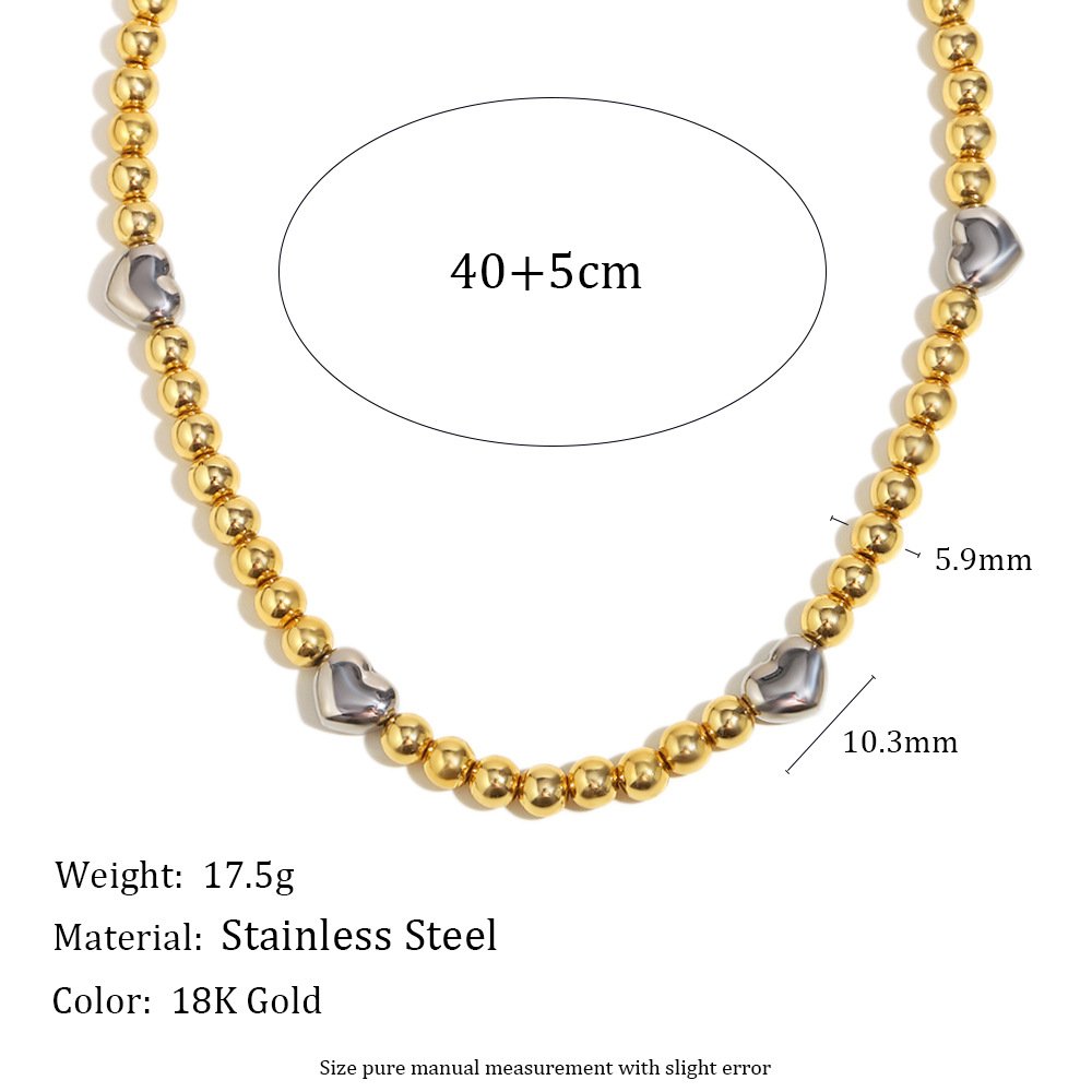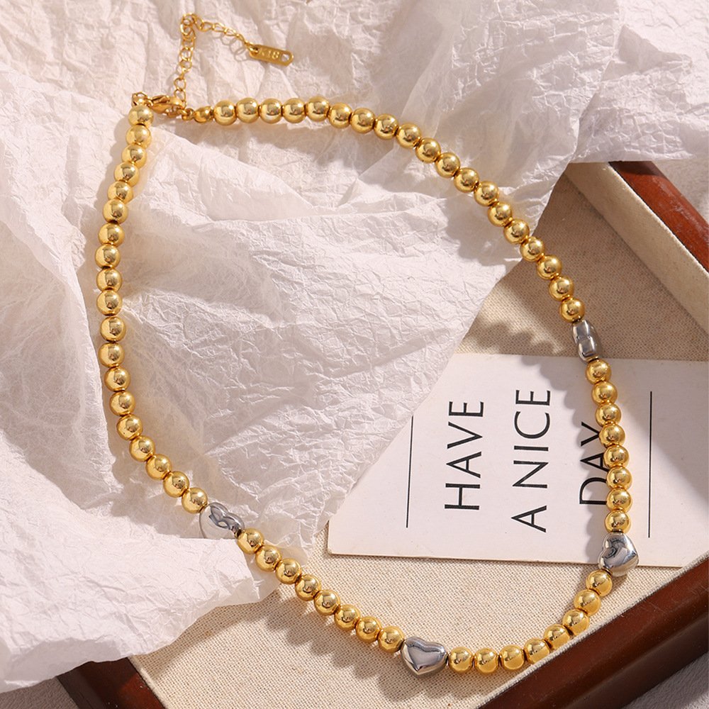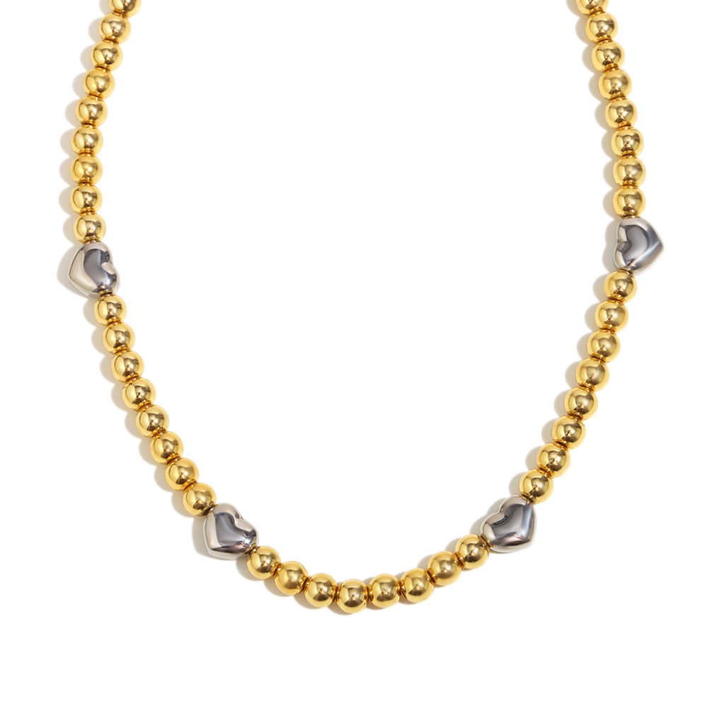 European and American cross-border hot-selling INS-style simple and versatile two-tone necklace, stainless steel 18K gold-plated rubber bead heart necklace