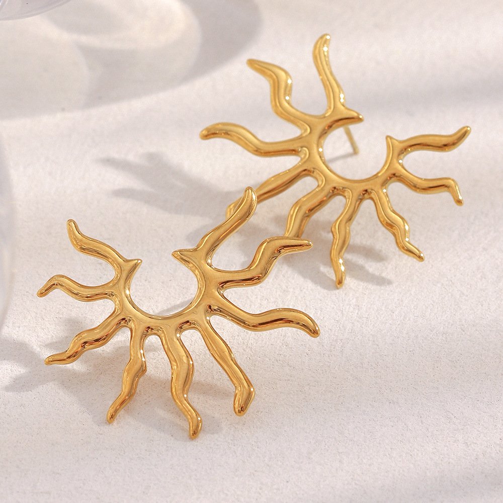 European and American cross-border hot-selling, personalized, niche, exaggerated, retro, stainless steel 18K gold-plated sunray earrings.