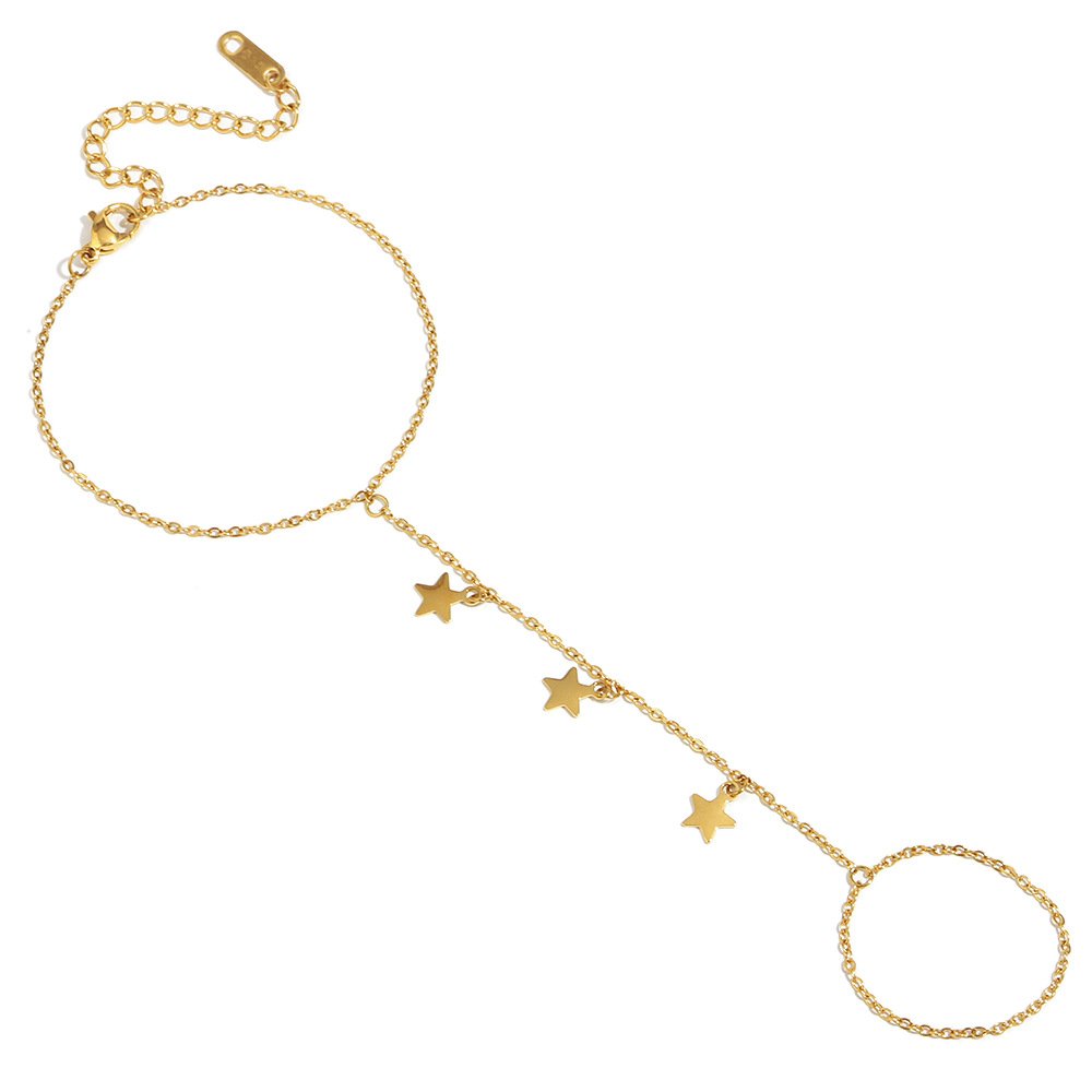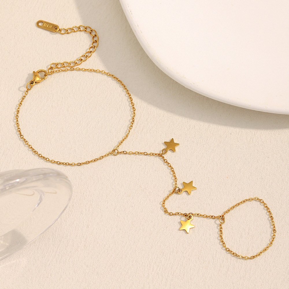 European and American cross-border INS niche light luxury exquisite temperament hand jewelry stainless steel plated 18K gold five-pointed star finger chain set