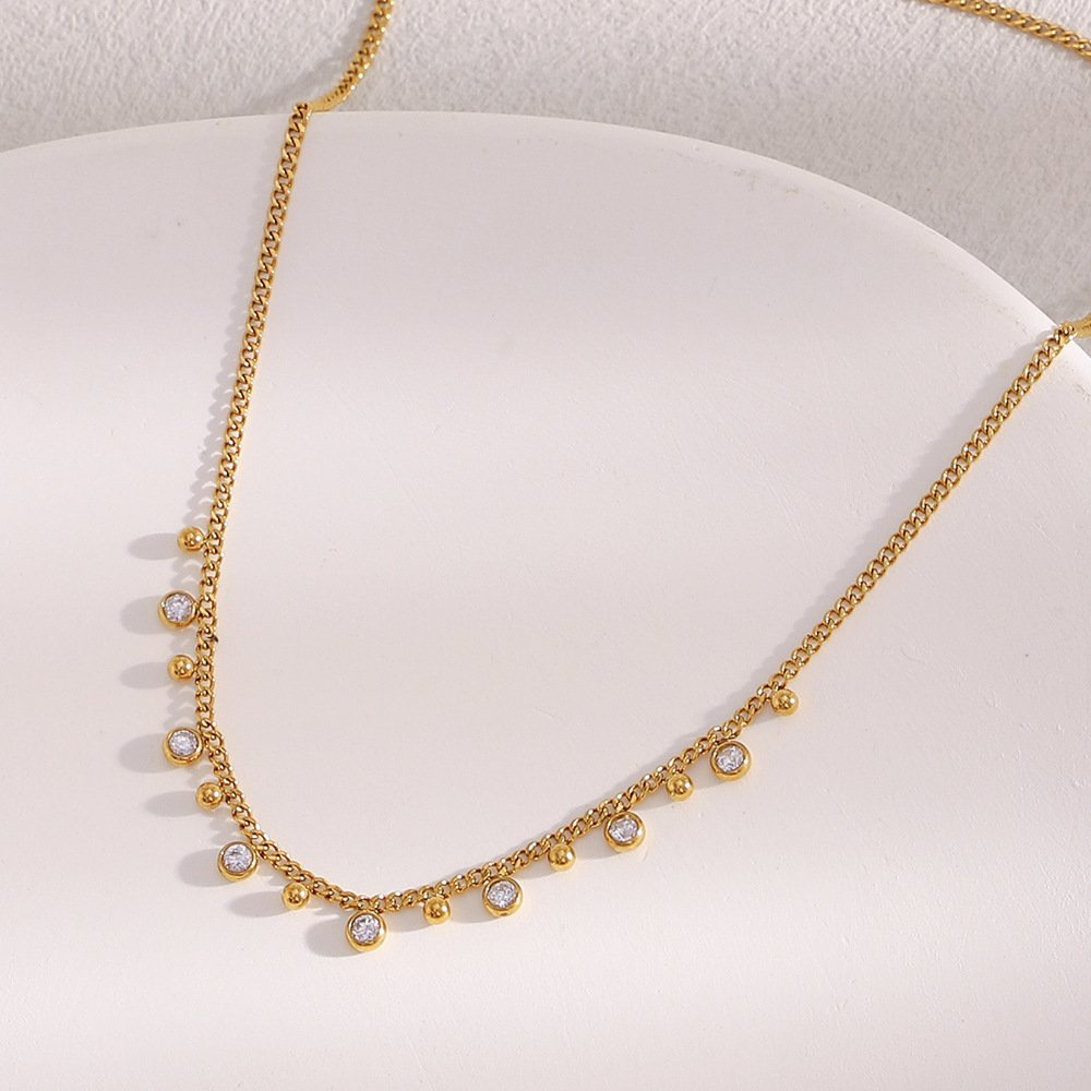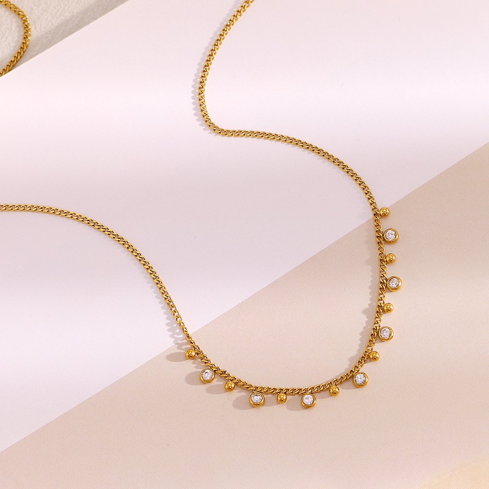 European and American Cross-Border INS Style, Exquisite and Versatile Necklace, 18K Gold-Plated Stainless Steel Teardrop Zircon Side Chain