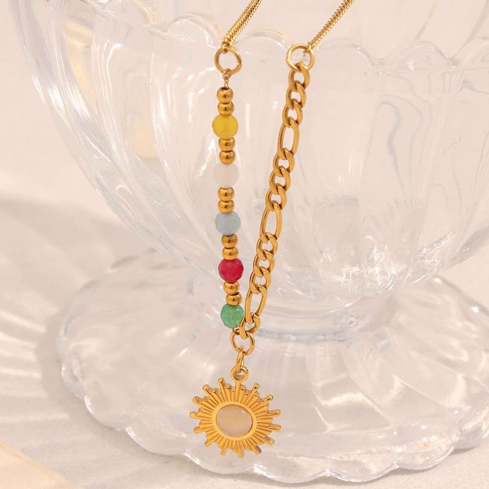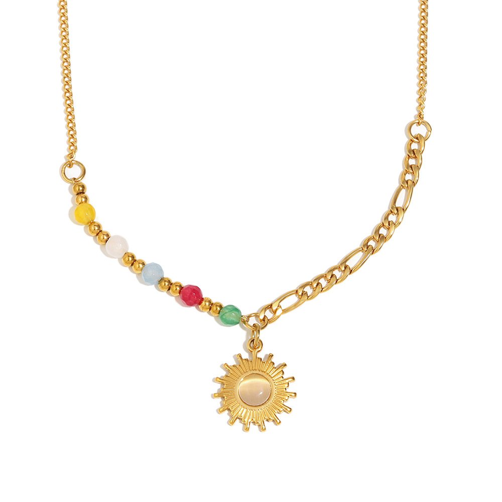 European and American cross-border INS style, French retro versatile necklace, stainless steel 18K gold-plated natural stone sun pendant necklace