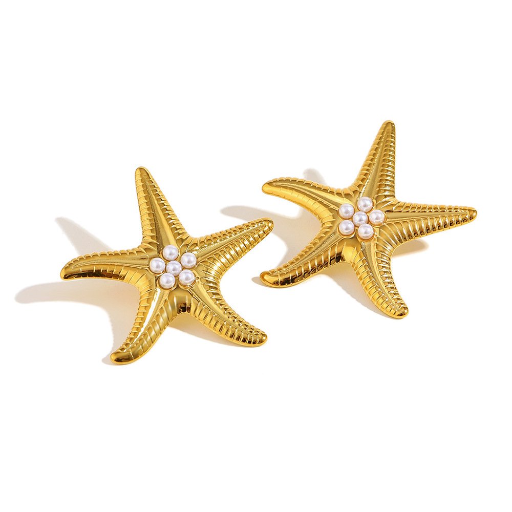 European and American cross-border INS style light luxury high-end necklace jewelry stainless steel 18K gold-plated eight-pointed star tassel pendant necklace
