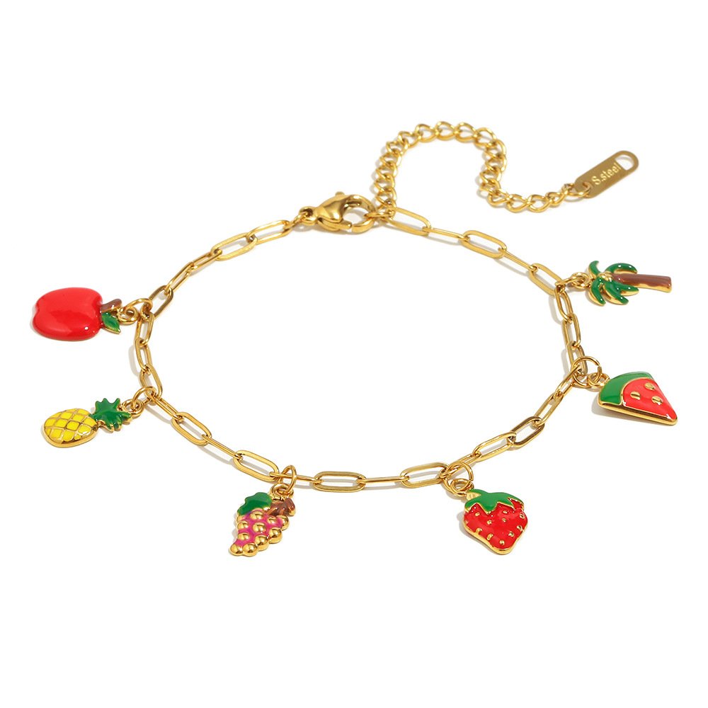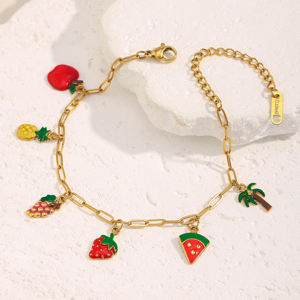 European and American cross-border INS summer ocean vacation style hand jewelry, stainless steel with 18K gold-plated ocean pendant bracelet.