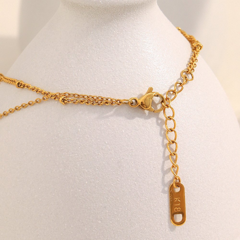 European and American cross-border light luxury, exquisite, and elegant, stainless steel 18K gold-plated colored zircon cross imitation pearl necklace for women