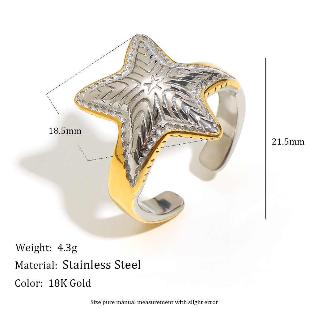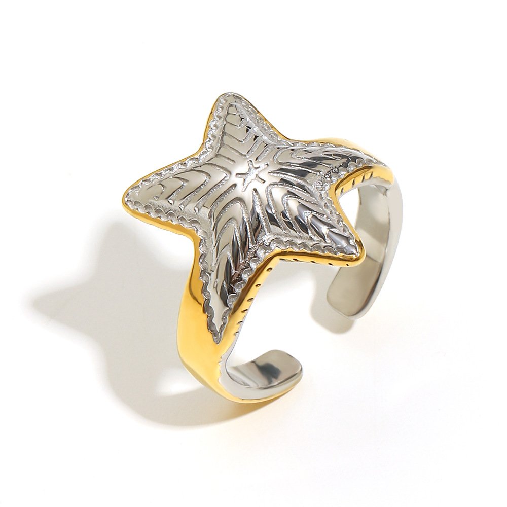 European and American cross-border new arrival, INS-style, trendy, vintage-inspired hand jewelry, stainless steel 18K gold-plated starfish patterned open ring