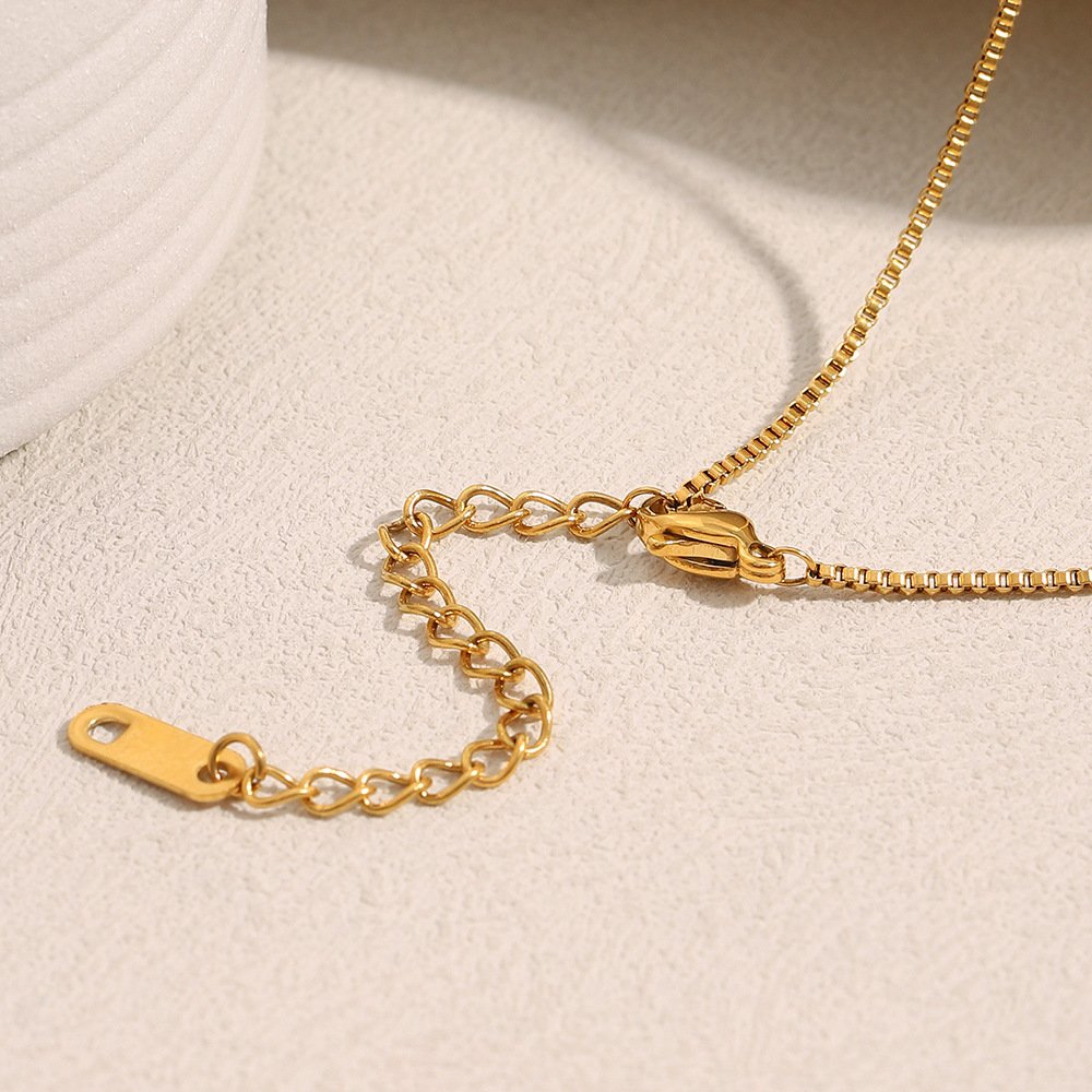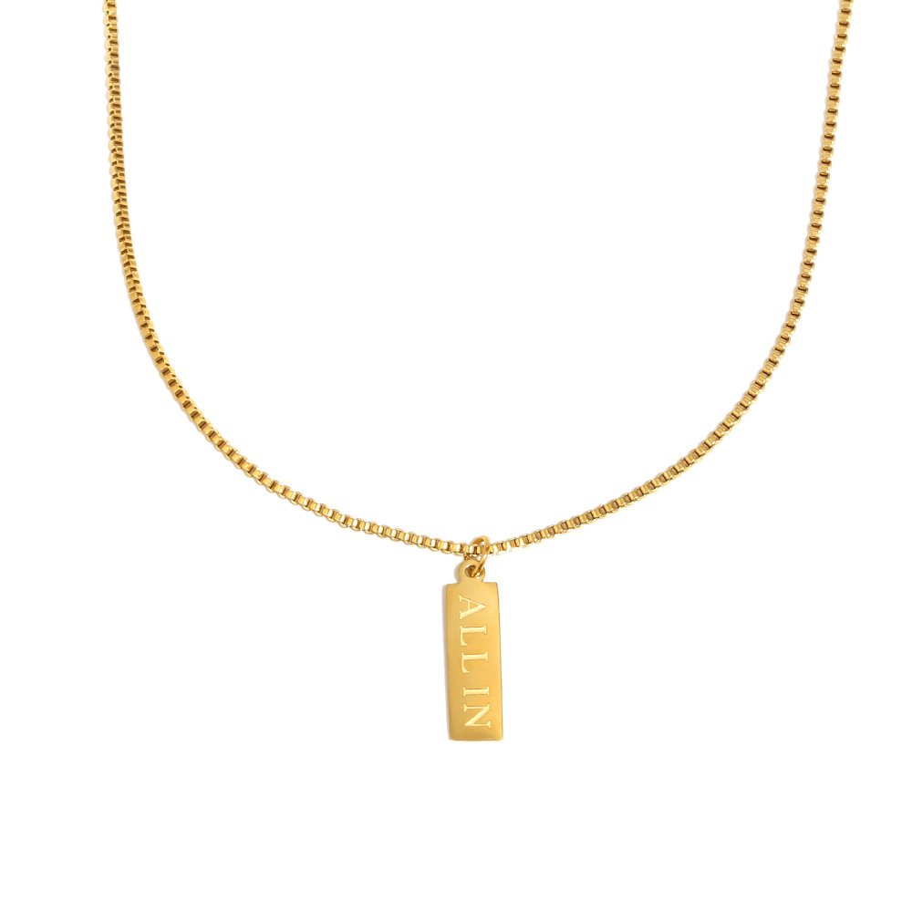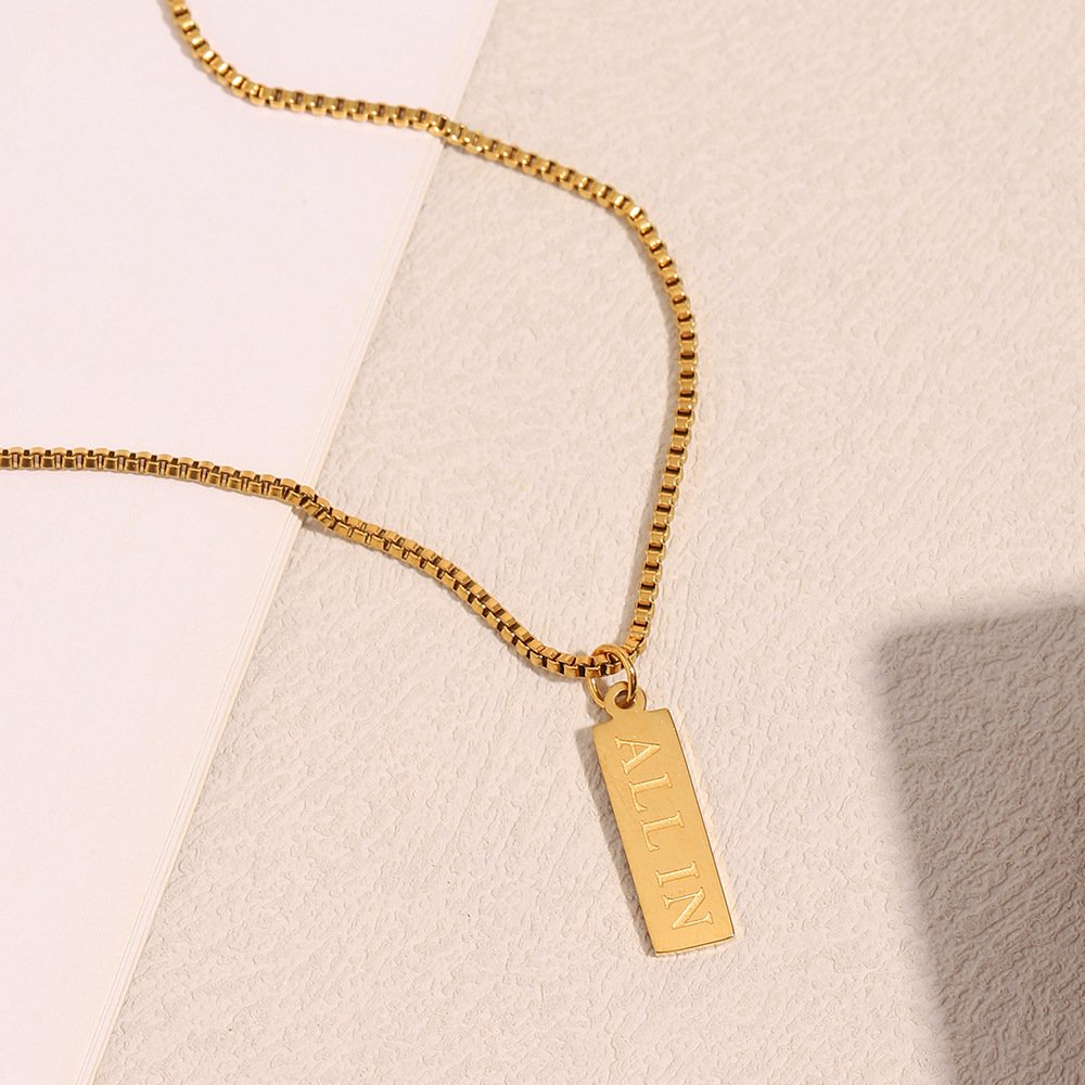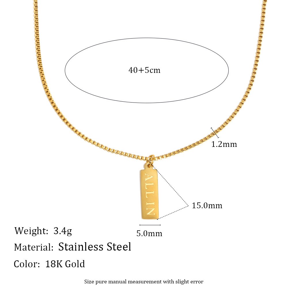 European and American cross-border new arrival, niche, trendy, and personalized jewelry, stainless steel 18K gold-plated small square necklace with English letters