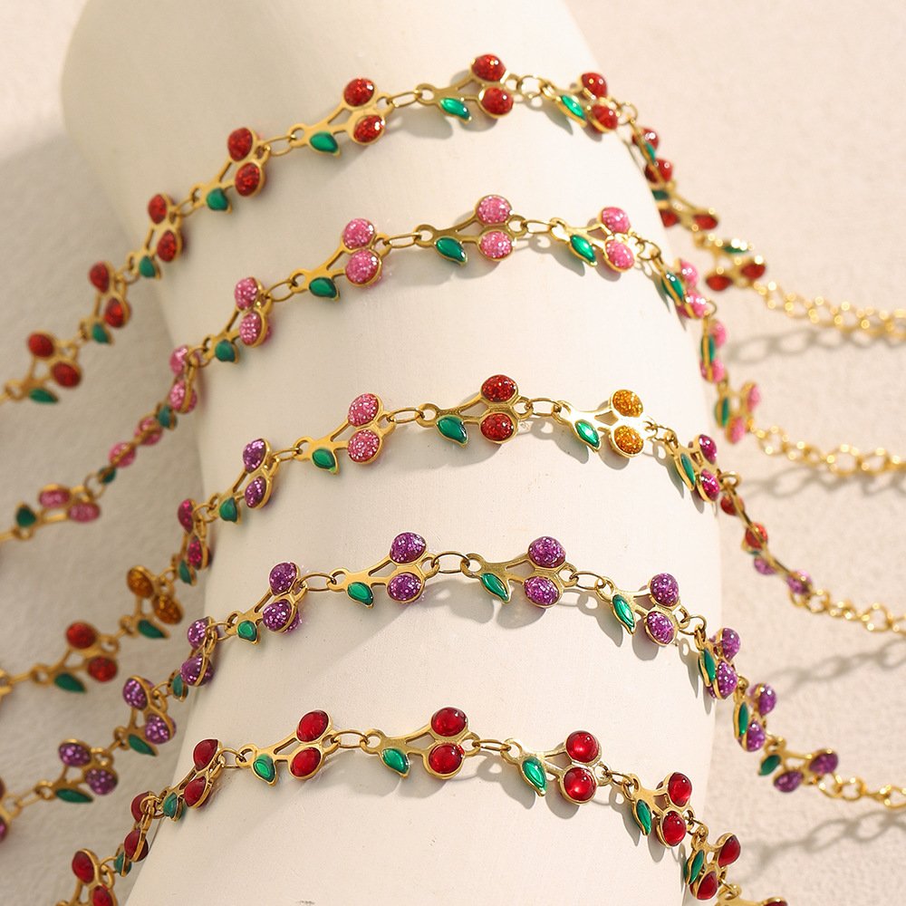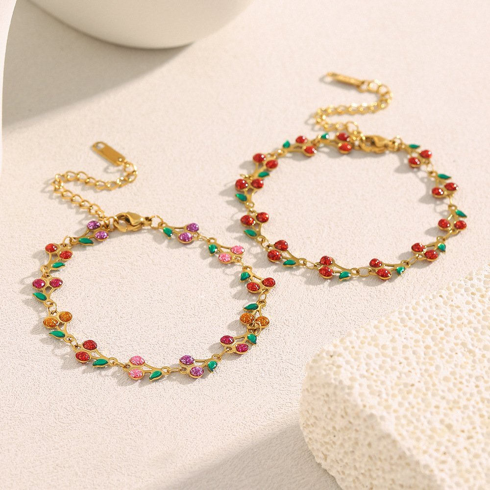 European and American cross-border new INS-style commuter fashion jewelry, 18K gold-plated stainless steel oil-dripping cherry bracelet for women