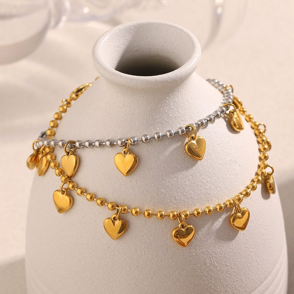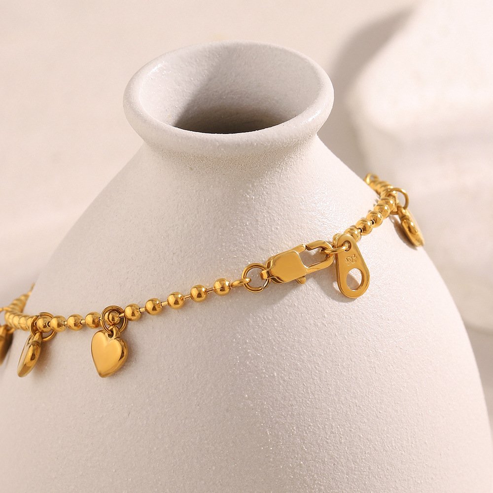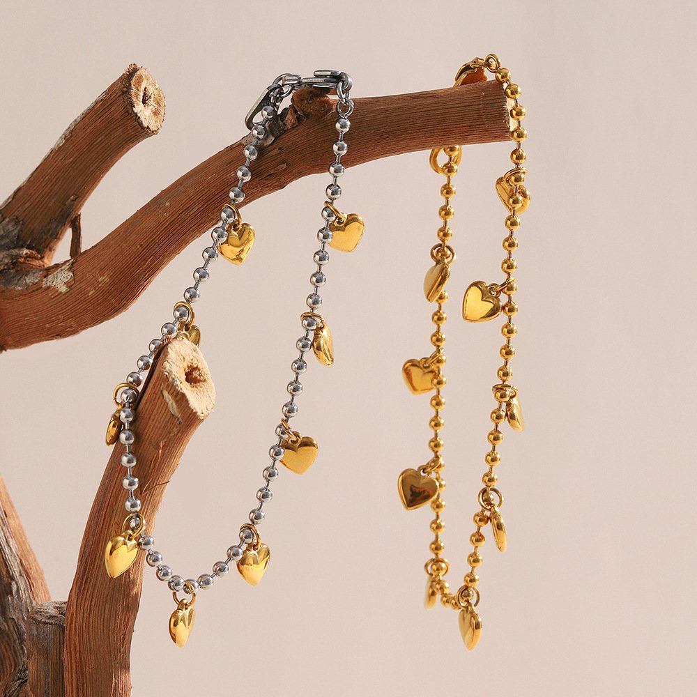 European and American cross-border new light luxury, exquisite, high-end, versatile hand jewelry, stainless steel 18K gold-plated round bead heart bracelet