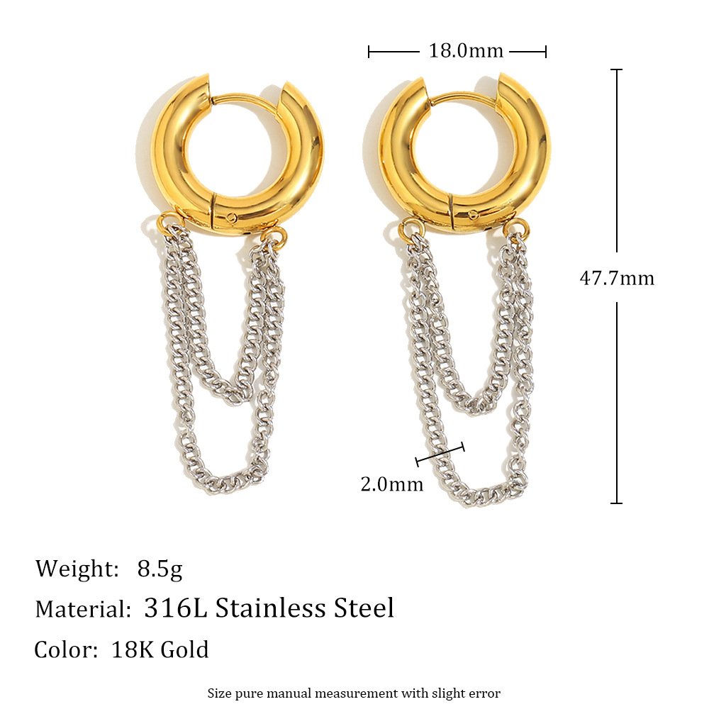 European and American cross-border new simple and versatile elegant earrings, stainless steel 18K gold-plated chain tassel earrings