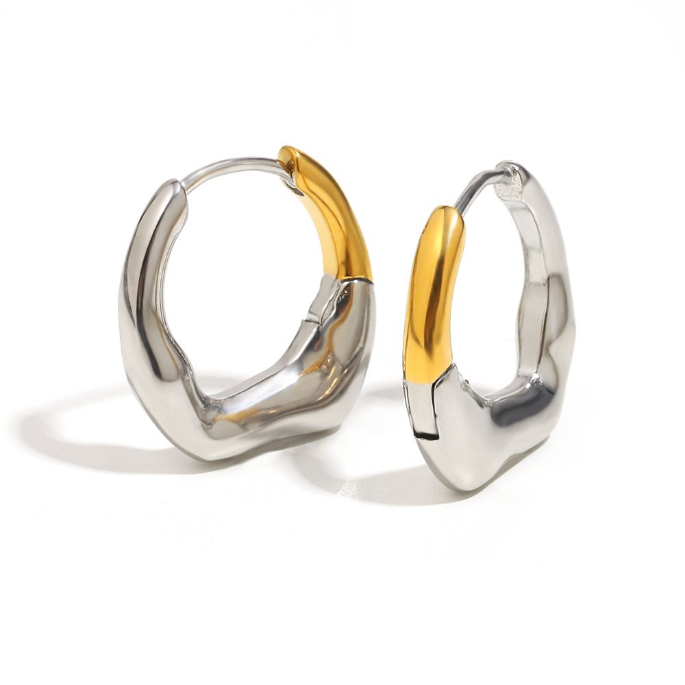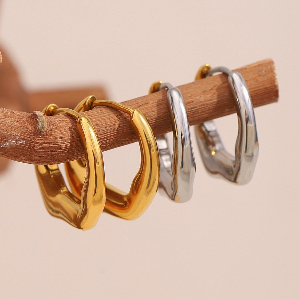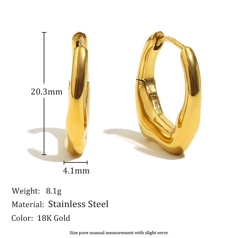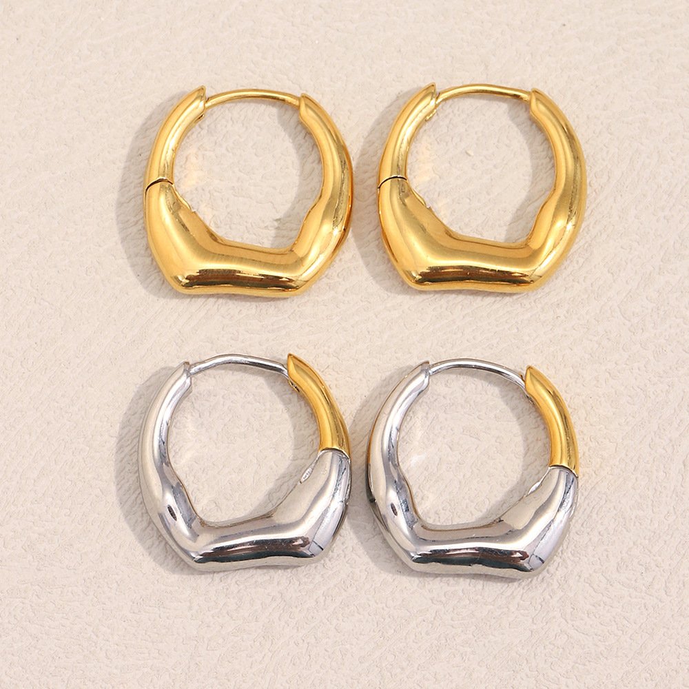 European and American Cross-Border New Simple and Versatile Elegant High-End Ear Jewelry Stainless Steel 18K Gold Plated Irregular Small Earrings