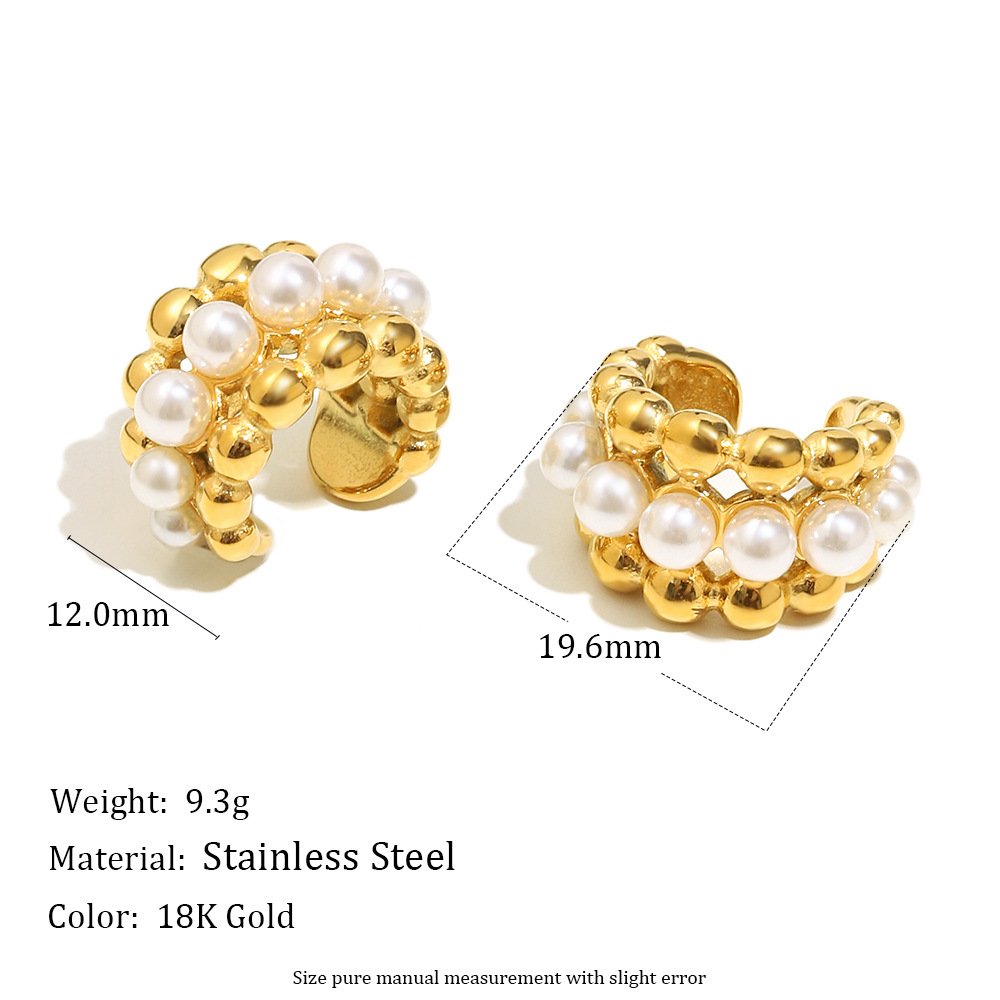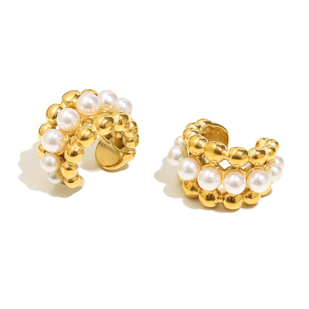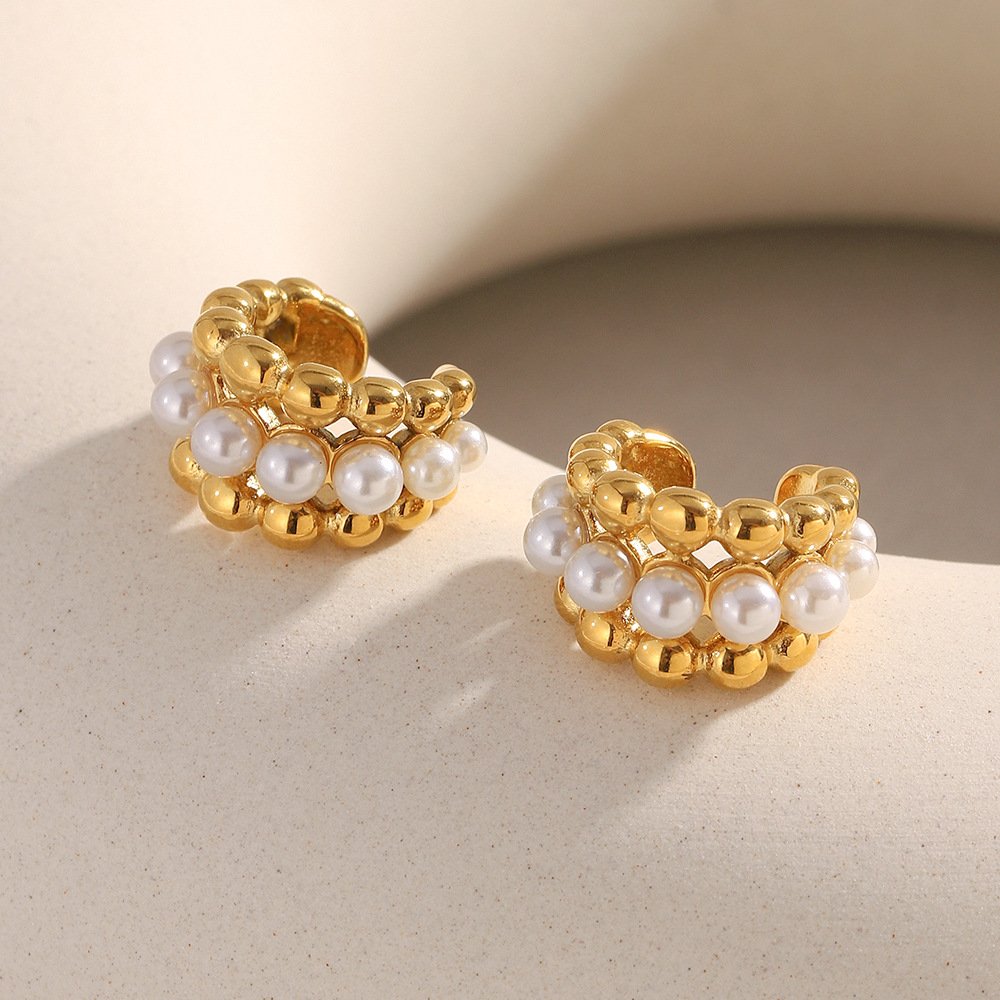 European and American cross-border new simple and versatile geometric stainless steel 18K gold-plated imitation pearl round bead earrings for women