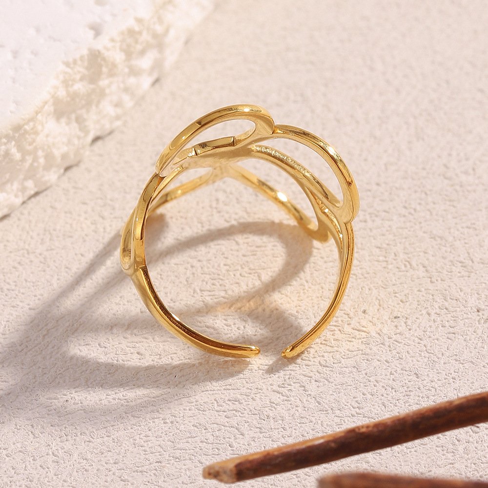 European and American cross-border retro and exaggerated design, niche ring, stainless steel 18K gold-plated flower open ring for women.