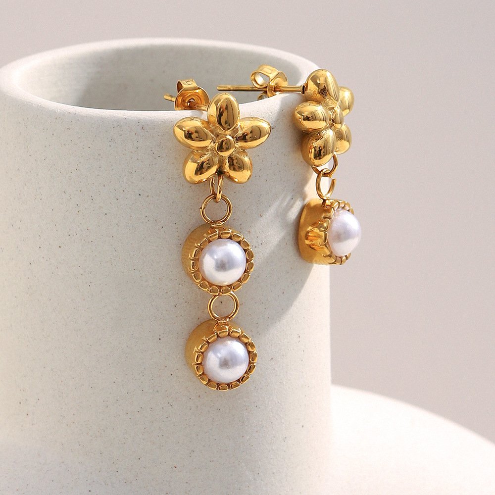 European and American cross-border retro, elegant, and light luxury earrings, stainless steel 18K gold-plated, hand-held ruby earrings