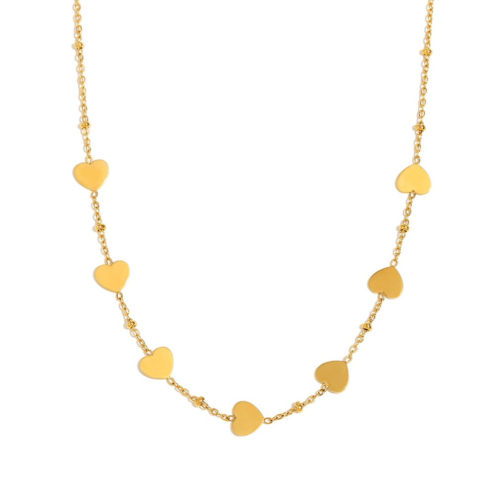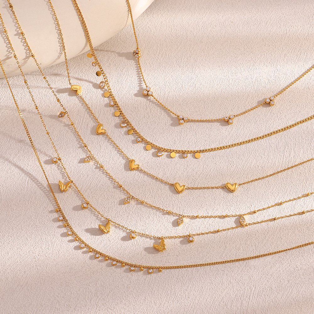 European and American cross-border versatile elegant stainless steel 18K gold-plated chain collection, heart-shaped teardrop zircon flower clip bead necklace.