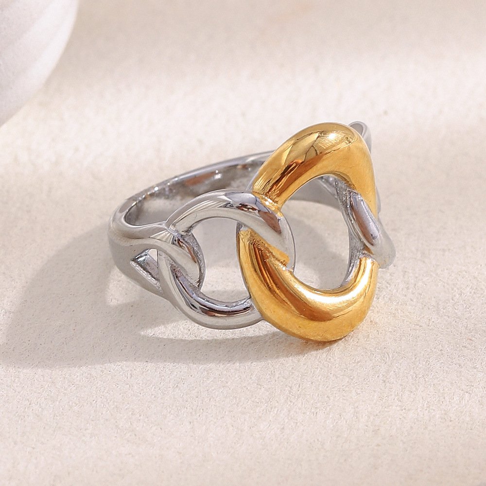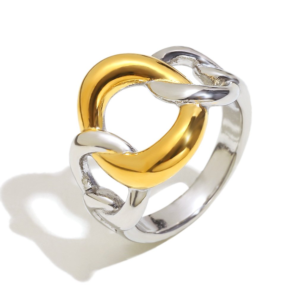 European and American fashion temperament niche personality Internet celebrity hand ornament stainless steel plated 18K gold plated creative ring chain ring for women