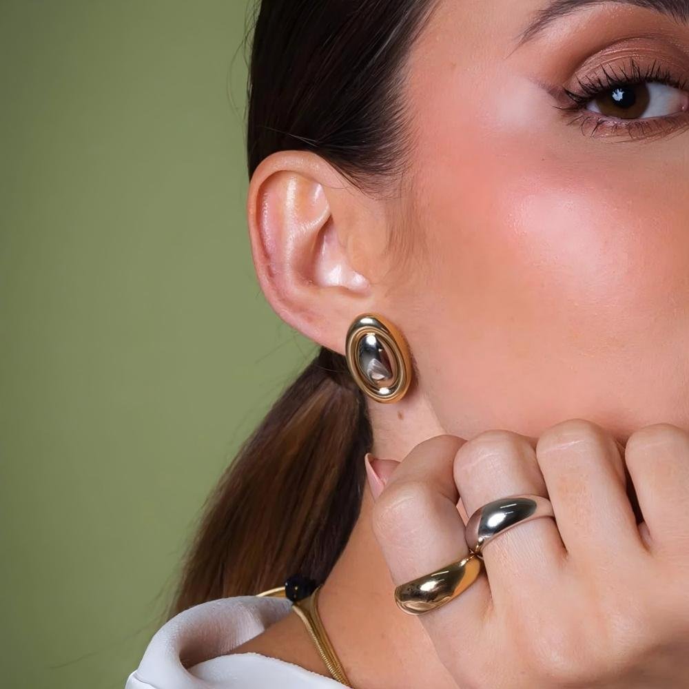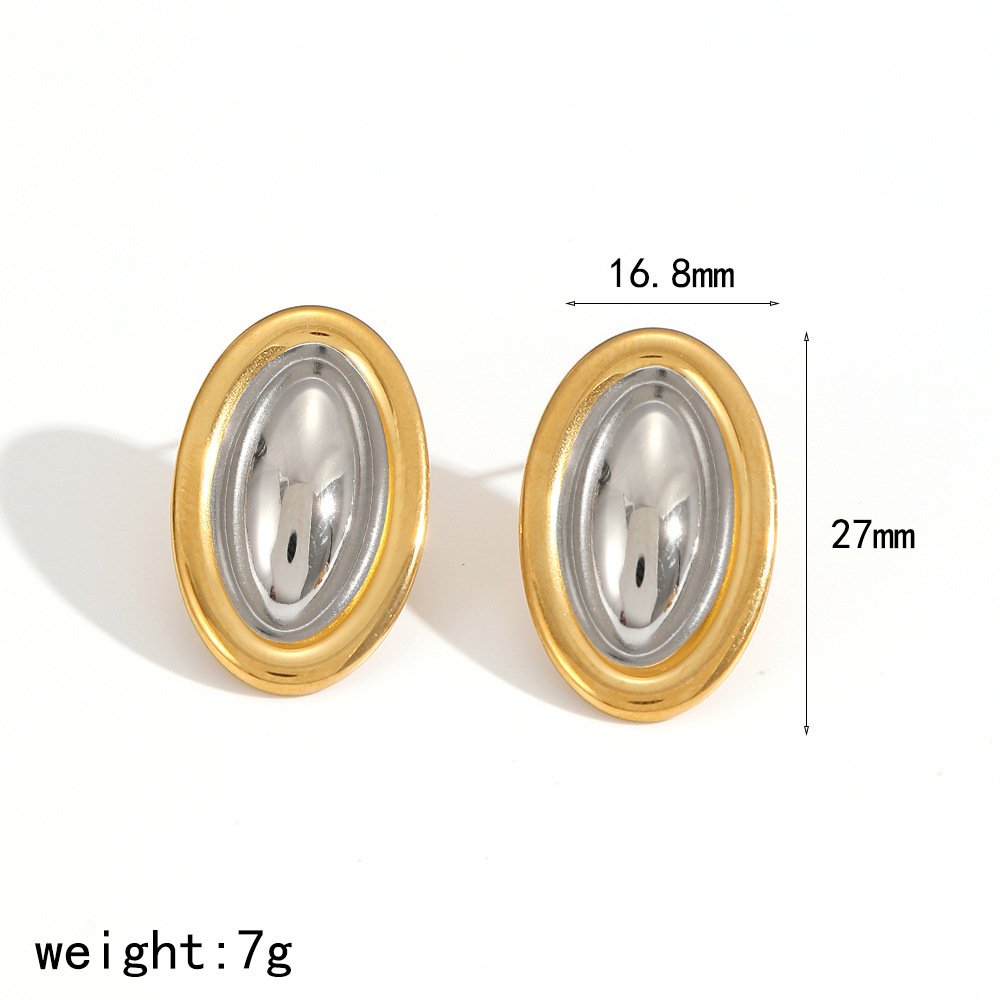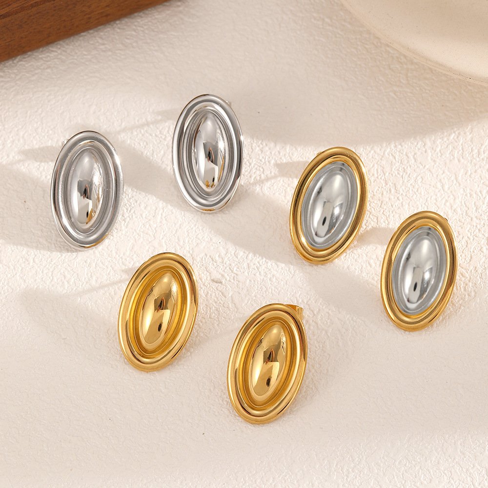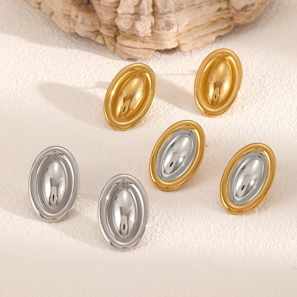 European and American ins style simple stainless steel earrings earrings female personality all-match 18k gold-plated oval color matching titanium steel earrings