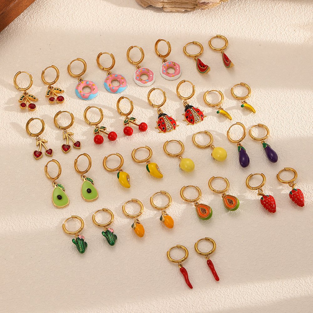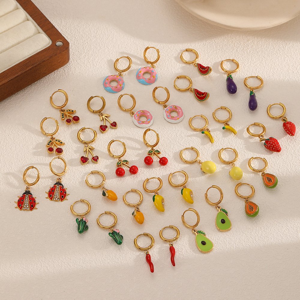 ins style fresh fruit titanium steel earrings earrings female fashion personality diy cute strawberry cherry stainless steel earrings