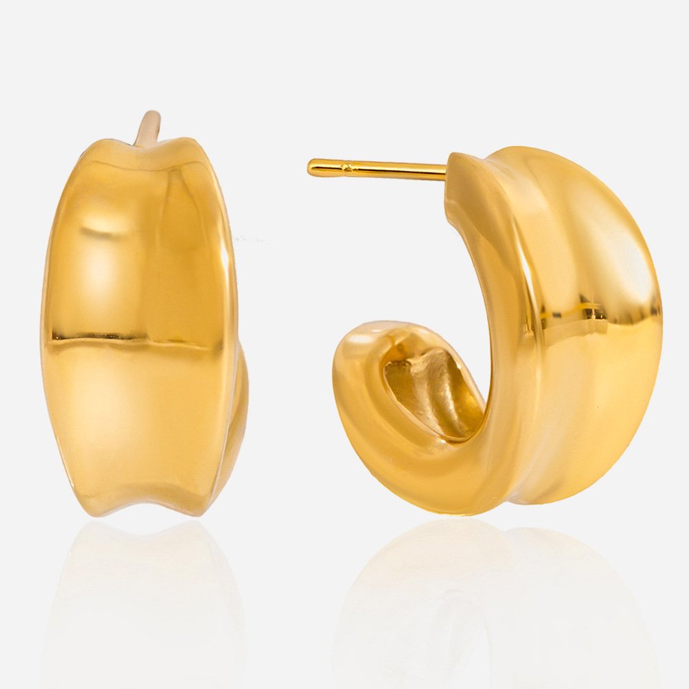 Jingqiao classic design 18K gold stainless steel concave C hoop earrings, versatile and fashionable stainless steel earrings wholesale