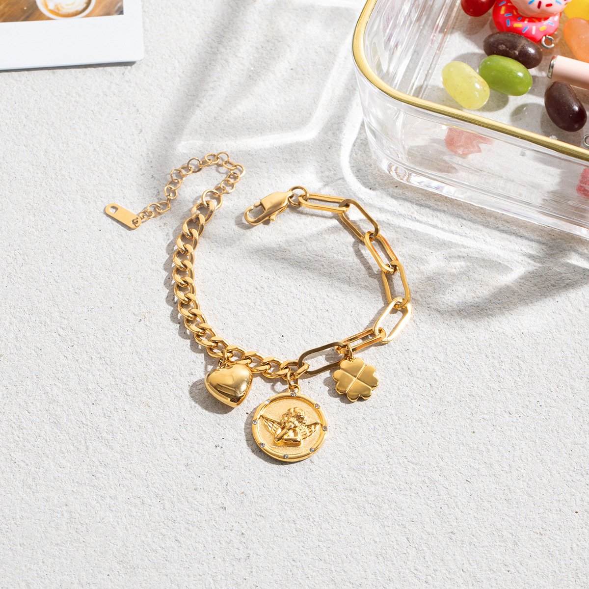 Jingqiao classic design, 18K gold stainless steel diamond, ancient coin series, angel coin, heart necklace.