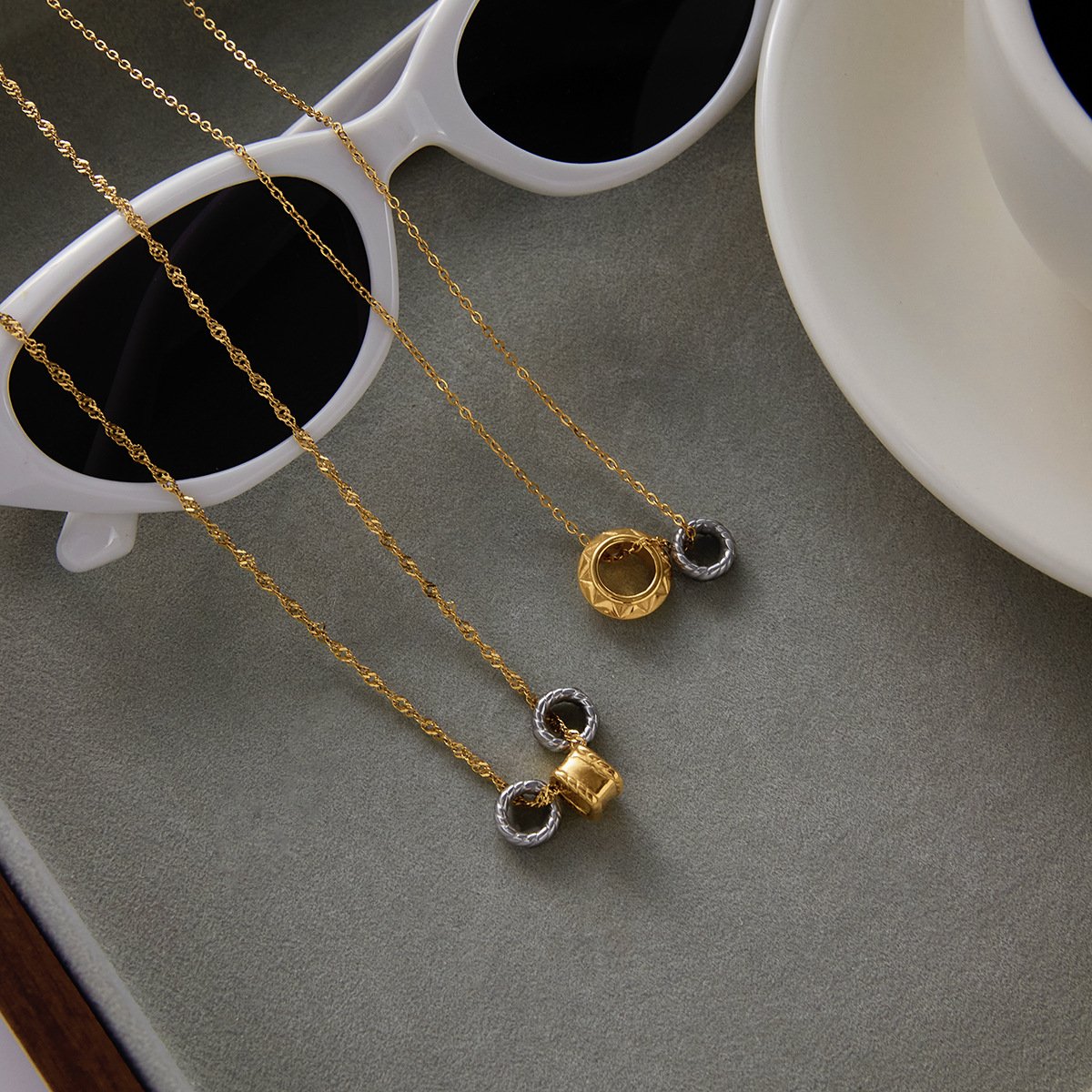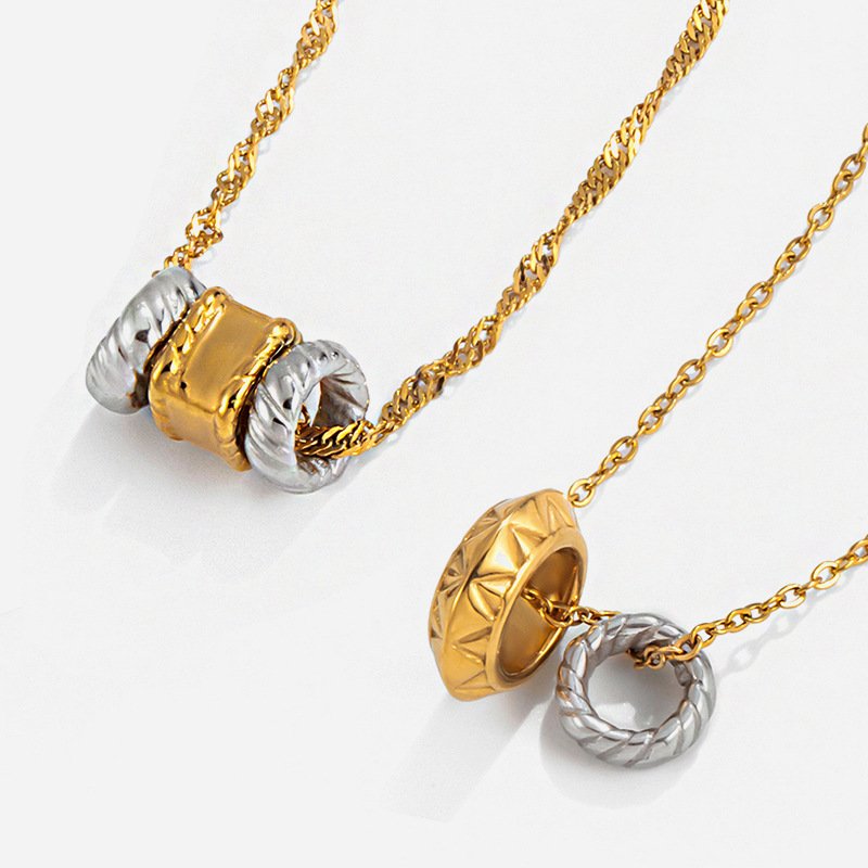 Jingqiao classic design 18K gold stainless steel gold and silver colorblock Colorblock double-ring pendant stainless steel necklace