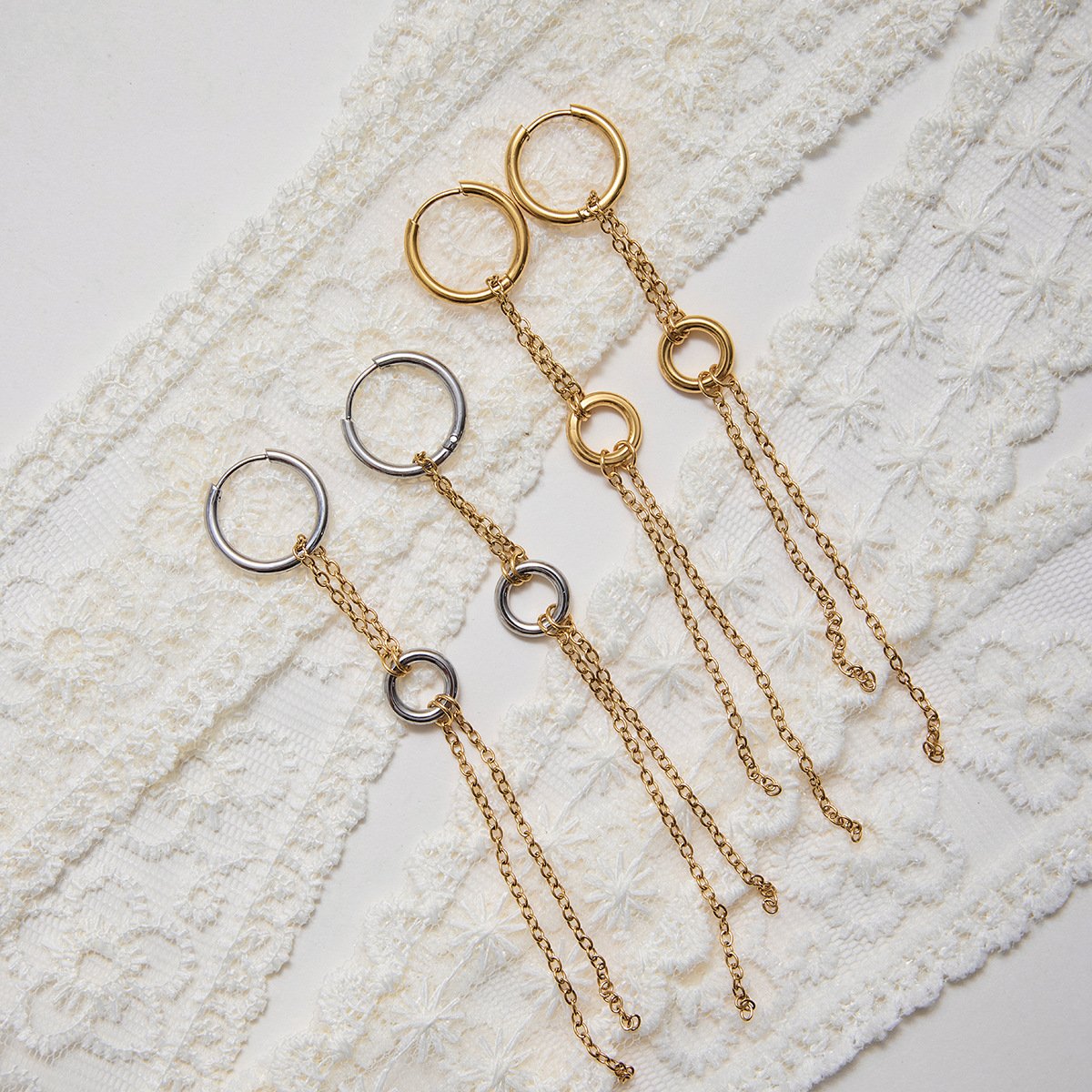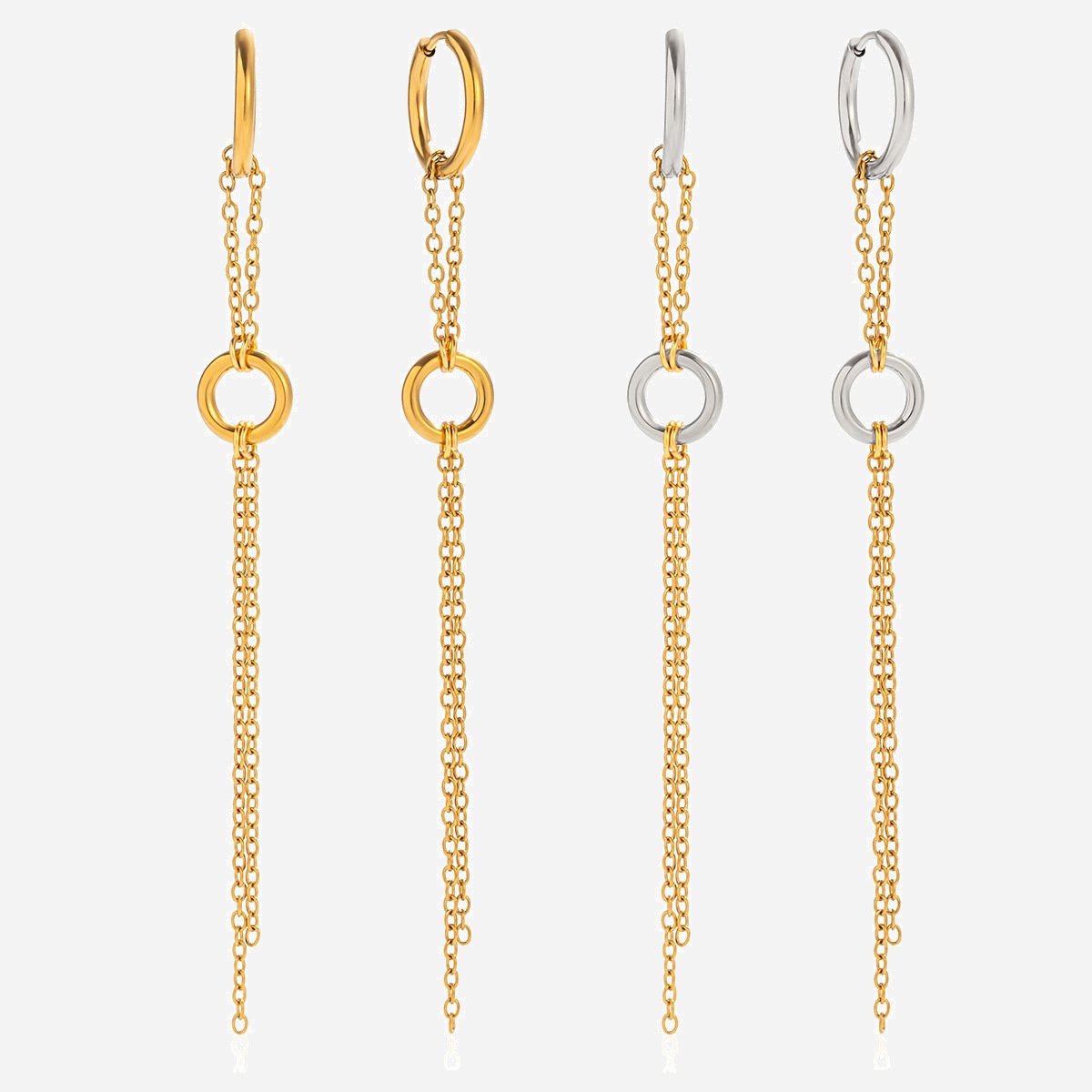 Jingqiao Design Modern Minimalist Style 18K Gold Stainless Steel Gold and Silver Colorblock Round Chain Tassel Earrings